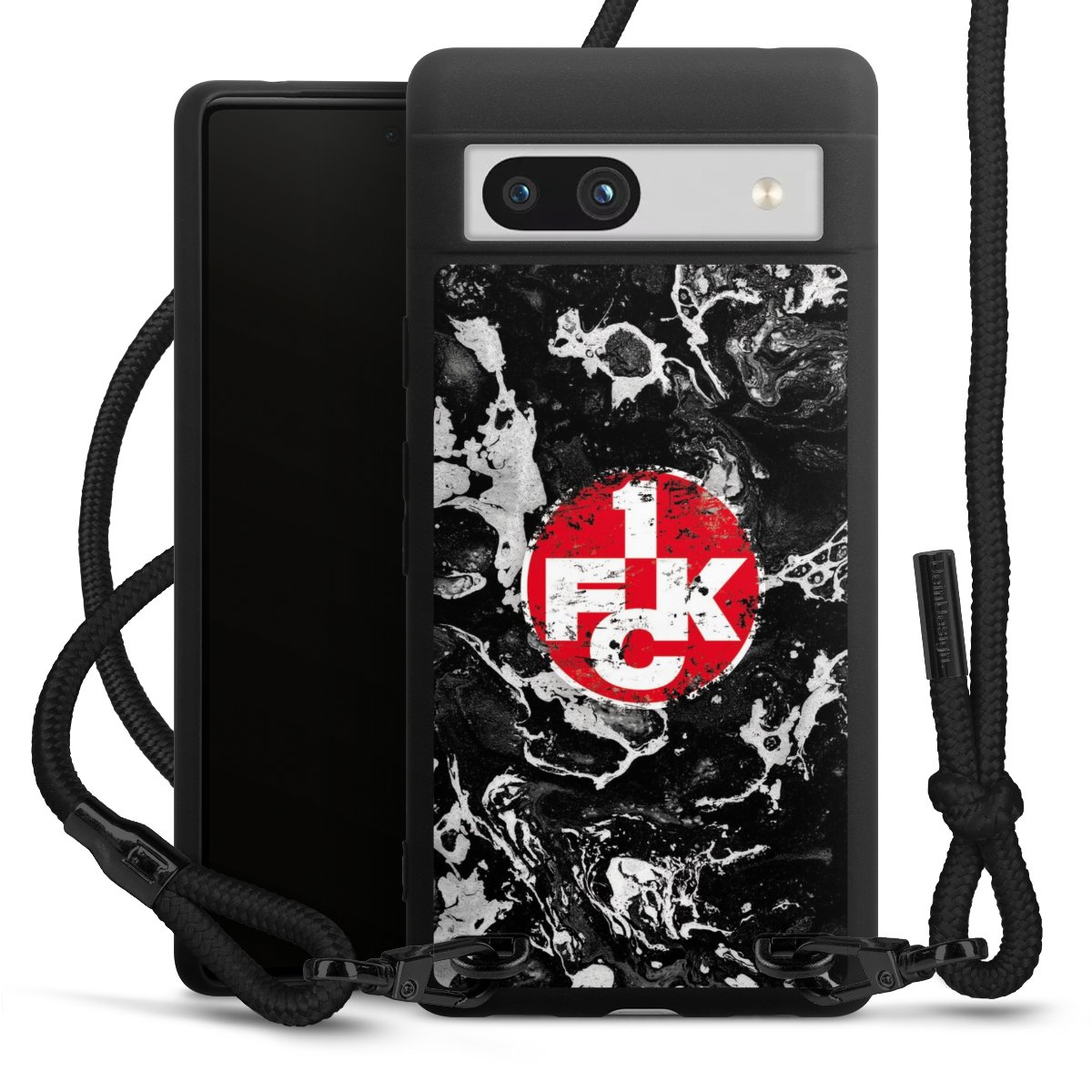 Die mattschwarze Silikonhülle besteht aus flexiblen TPU (thermoplastisches Polyurethan) und bietet robusten Schutz. Durch das langlebige, bruchsichere Material ist die Hülle biegsam und formbeständig zugleich. Die matte Oberfläche lässt Dein Design besser zur Geltung kommen und ist weniger anfällig für Fingerabdrücke und Schmutz. Das stylische Trend-Accessoire liegt griffig in der Hand und wird optimal von der Handykette aus Stoff (Polyester) ergänzt. Das geflochtene Stoffband ist ca. 1,70 Meter lang mit einem Durchmesser von ca. 0,5cm. Aufgrund der besonderen Knotentechnik ist das Band durch einfaches Ziehen in der Länge verstellbar. Als kleines i-Tüpfelchen haben wir das Band mit schicken Metall-Verschlüssen in Mattschwarz versehen.