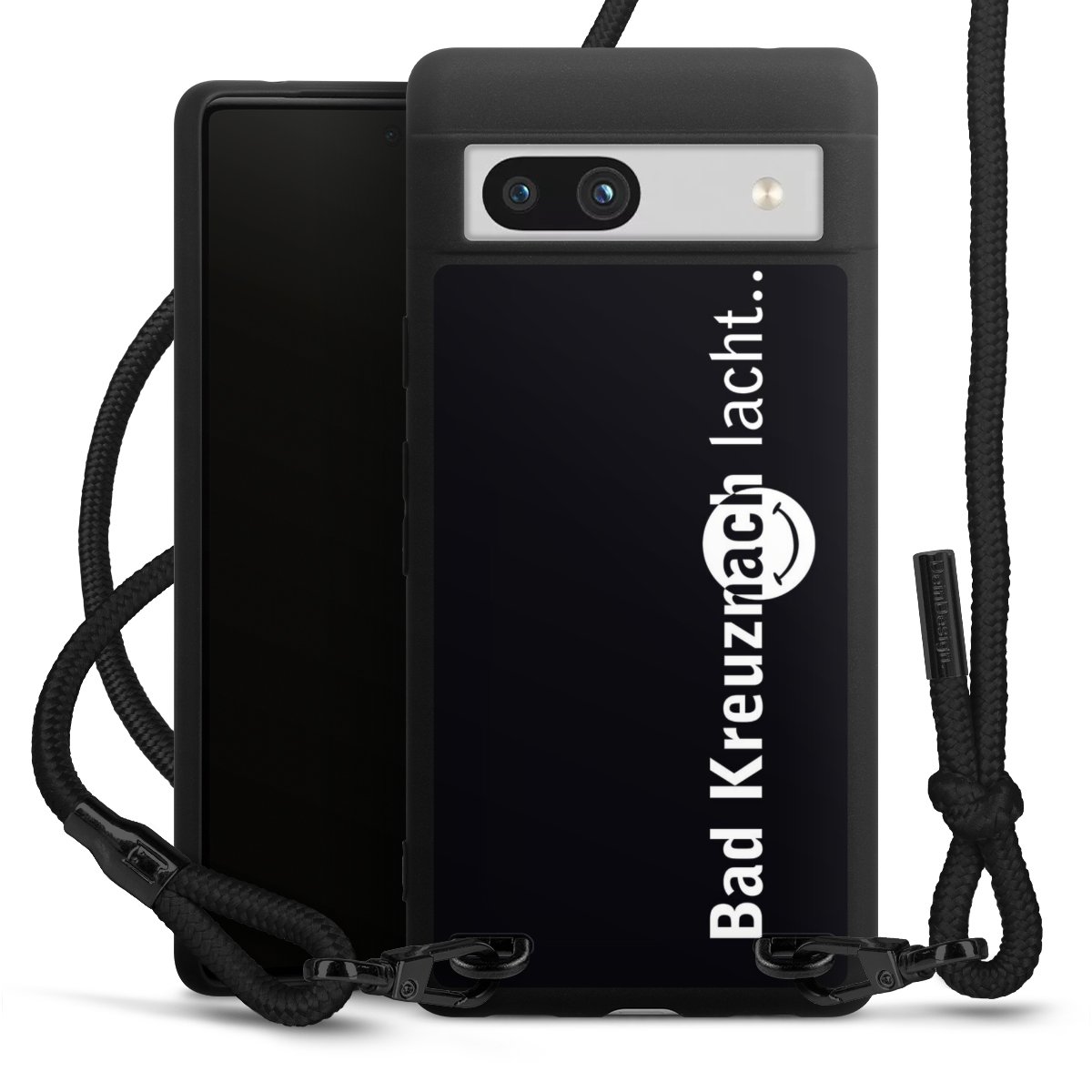 Die mattschwarze Silikonhülle besteht aus flexiblen TPU (thermoplastisches Polyurethan) und bietet robusten Schutz. Durch das langlebige, bruchsichere Material ist die Hülle biegsam und formbeständig zugleich. Die matte Oberfläche lässt Dein Design besser zur Geltung kommen und ist weniger anfällig für Fingerabdrücke und Schmutz. Das stylische Trend-Accessoire liegt griffig in der Hand und wird optimal von der Handykette aus Stoff (Polyester) ergänzt. Das geflochtene Stoffband ist ca. 1,70 Meter lang mit einem Durchmesser von ca. 0,5cm. Aufgrund der besonderen Knotentechnik ist das Band durch einfaches Ziehen in der Länge verstellbar. Als kleines i-Tüpfelchen haben wir das Band mit schicken Metall-Verschlüssen in Mattschwarz versehen.