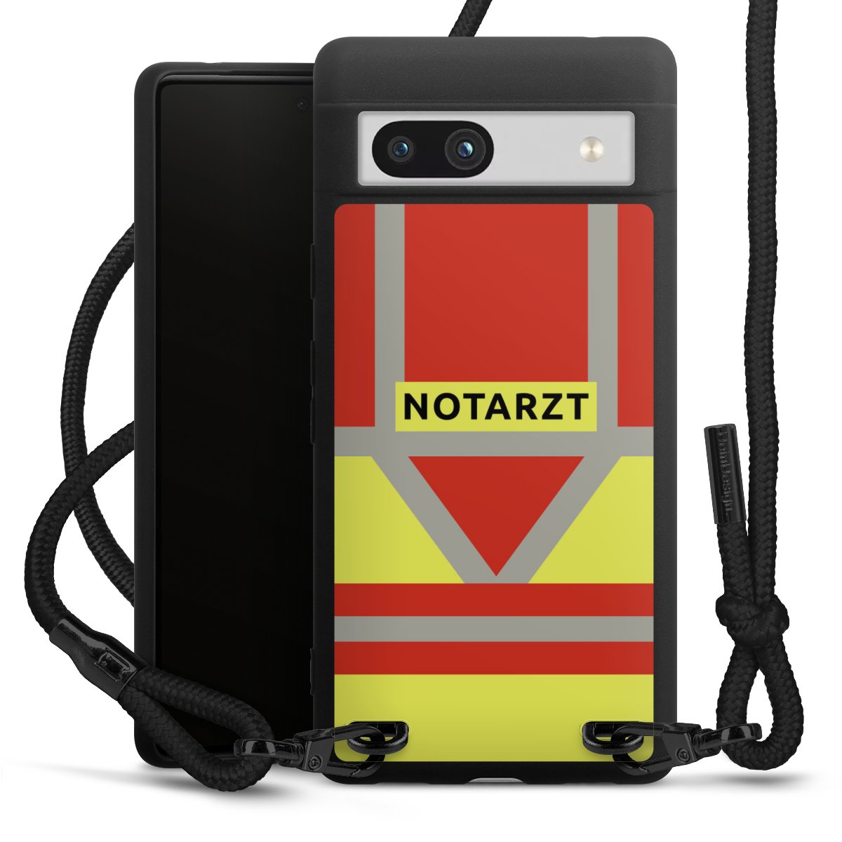 Die mattschwarze Silikonhülle besteht aus flexiblen TPU (thermoplastisches Polyurethan) und bietet robusten Schutz. Durch das langlebige, bruchsichere Material ist die Hülle biegsam und formbeständig zugleich. Die matte Oberfläche lässt Dein Design besser zur Geltung kommen und ist weniger anfällig für Fingerabdrücke und Schmutz. Das stylische Trend-Accessoire liegt griffig in der Hand und wird optimal von der Handykette aus Stoff (Polyester) ergänzt. Das geflochtene Stoffband ist ca. 1,70 Meter lang mit einem Durchmesser von ca. 0,5cm. Aufgrund der besonderen Knotentechnik ist das Band durch einfaches Ziehen in der Länge verstellbar. Als kleines i-Tüpfelchen haben wir das Band mit schicken Metall-Verschlüssen in Mattschwarz versehen.