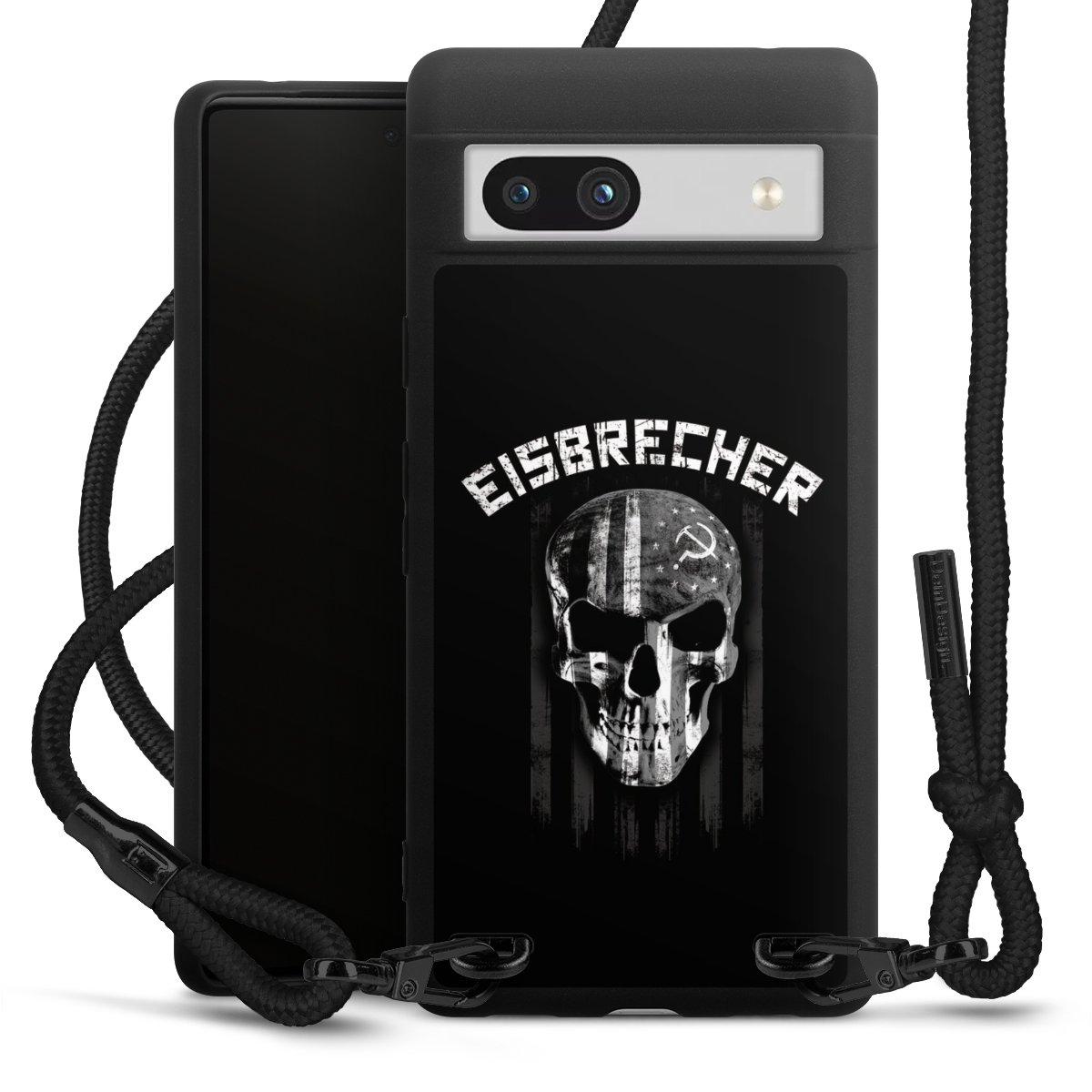 Die mattschwarze Silikonhülle besteht aus flexiblen TPU (thermoplastisches Polyurethan) und bietet robusten Schutz. Durch das langlebige, bruchsichere Material ist die Hülle biegsam und formbeständig zugleich. Die matte Oberfläche lässt Dein Design besser zur Geltung kommen und ist weniger anfällig für Fingerabdrücke und Schmutz. Das stylische Trend-Accessoire liegt griffig in der Hand und wird optimal von der Handykette aus Stoff (Polyester) ergänzt. Das geflochtene Stoffband ist ca. 1,70 Meter lang mit einem Durchmesser von ca. 0,5cm. Aufgrund der besonderen Knotentechnik ist das Band durch einfaches Ziehen in der Länge verstellbar. Als kleines i-Tüpfelchen haben wir das Band mit schicken Metall-Verschlüssen in Mattschwarz versehen.