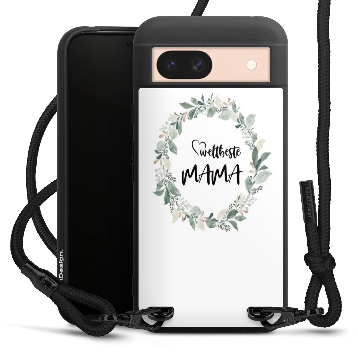 Die mattschwarze Silikonhülle besteht aus flexiblen TPU (thermoplastisches Polyurethan) und bietet robusten Schutz. Durch das langlebige, bruchsichere Material ist die Hülle biegsam und formbeständig zugleich. Die matte Oberfläche lässt Dein Design besser zur Geltung kommen und ist weniger anfällig für Fingerabdrücke und Schmutz. Das stylische Trend-Accessoire liegt griffig in der Hand und wird optimal von der Handykette aus Stoff (Polyester) ergänzt. Das geflochtene Stoffband ist ca. 1,70 Meter lang mit einem Durchmesser von ca. 0,5cm. Aufgrund der besonderen Knotentechnik ist das Band durch einfaches Ziehen in der Länge verstellbar. Als kleines i-Tüpfelchen haben wir das Band mit schicken Metall-Verschlüssen in Mattschwarz versehen.