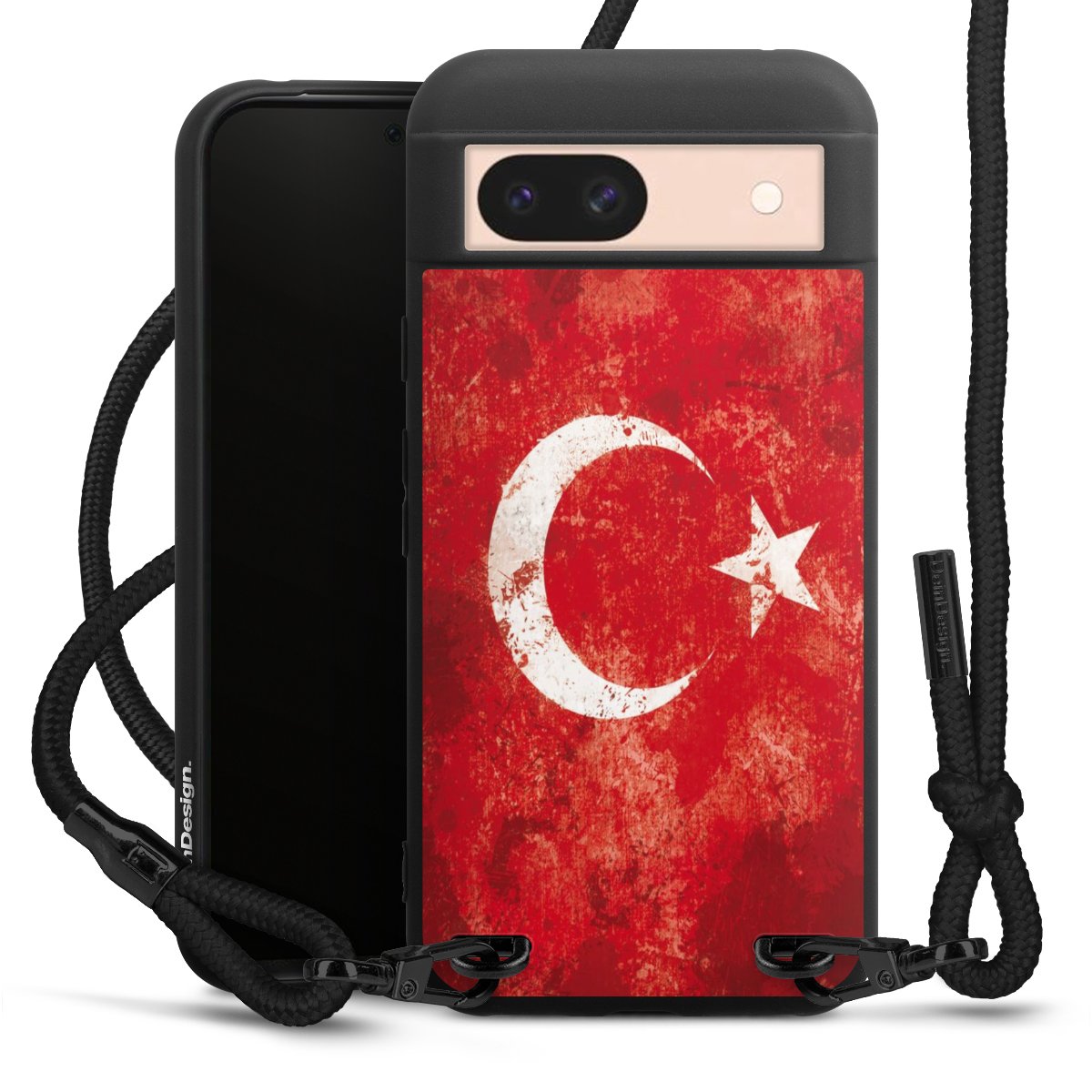 Die mattschwarze Silikonhülle besteht aus flexiblen TPU (thermoplastisches Polyurethan) und bietet robusten Schutz. Durch das langlebige, bruchsichere Material ist die Hülle biegsam und formbeständig zugleich. Die matte Oberfläche lässt Dein Design besser zur Geltung kommen und ist weniger anfällig für Fingerabdrücke und Schmutz. Das stylische Trend-Accessoire liegt griffig in der Hand und wird optimal von der Handykette aus Stoff (Polyester) ergänzt. Das geflochtene Stoffband ist ca. 1,70 Meter lang mit einem Durchmesser von ca. 0,5cm. Aufgrund der besonderen Knotentechnik ist das Band durch einfaches Ziehen in der Länge verstellbar. Als kleines i-Tüpfelchen haben wir das Band mit schicken Metall-Verschlüssen in Mattschwarz versehen.