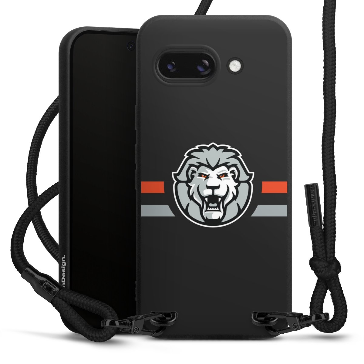 Pure Black: Handyhülle, Stoffband und Metalldetails in stylischem Mattschwarz.