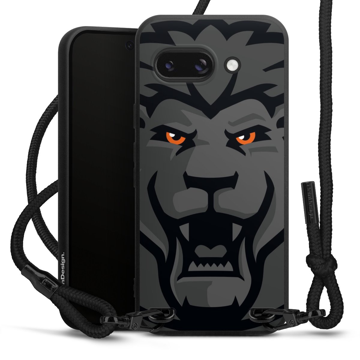 Pure Black: Handyhülle, Stoffband und Metalldetails in stylischem Mattschwarz.