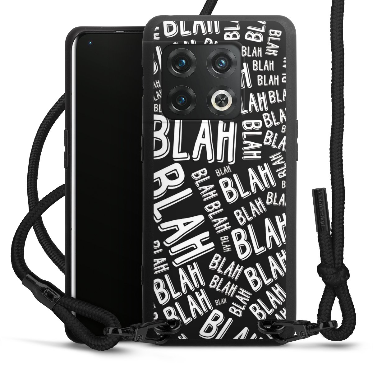 Pure Black: Handyhülle, Stoffband und Metalldetails in stylischem Mattschwarz.