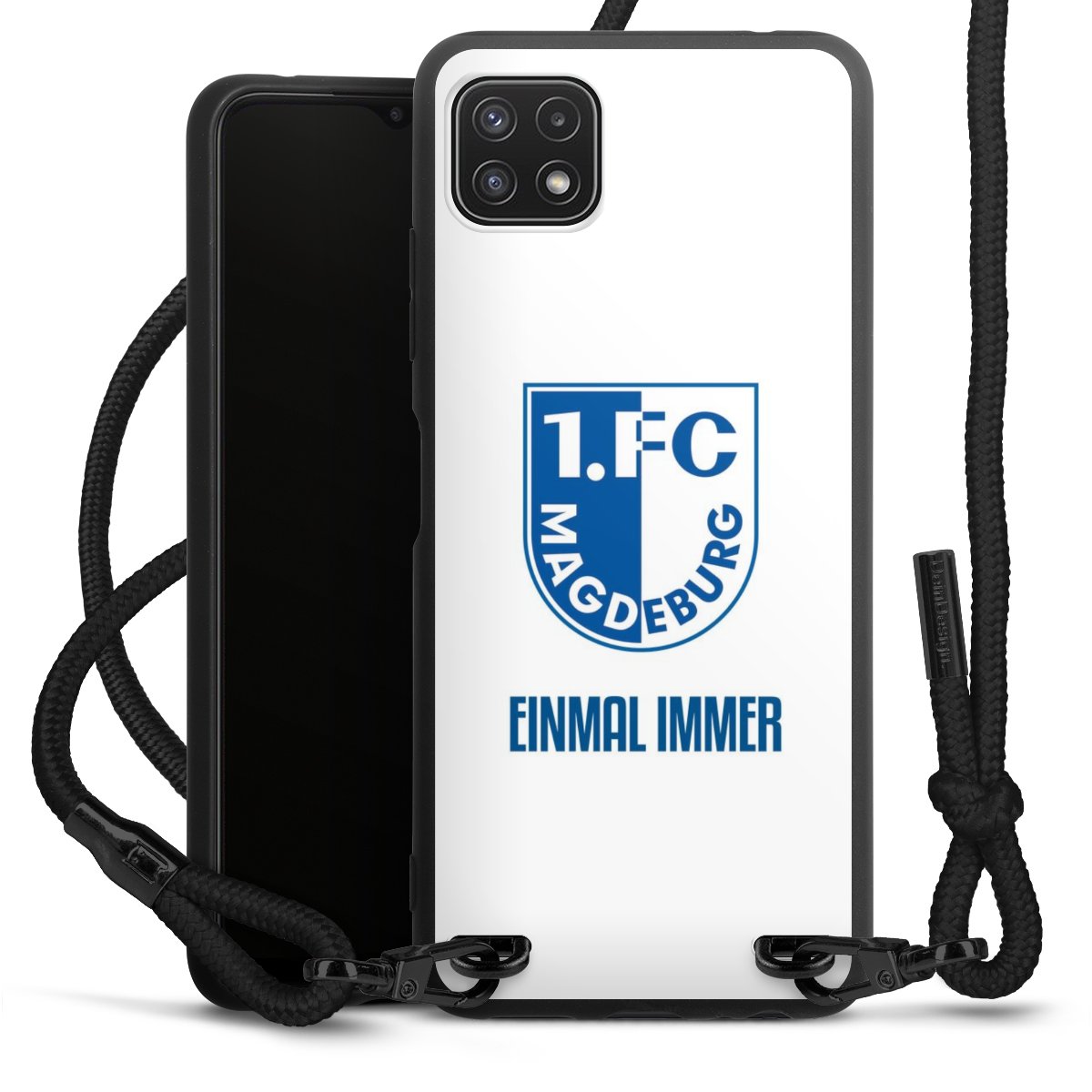 Bei dieser Handyhülle nutzen wir das solide Direktdruck-Verfahren, weshalb der Druckbereich ausschließlich die Rückseite umfasst und der Rand hingegen unbedruckt bleibt. Das Case zum Umhängen kann sowohl unbedruckt, als auch vollflächig oder partiell bedruckt bestellt werden. Wähle für Dein Design entweder eines unserer exklusiven Shop-Motive, oder werde kreativ und gestalte Dein Wunschdesign zum Beispiel mit Fotos und Overlays selbst. Designe Dir Dein persönliches Trend-Accessoire und setze ein individuelles Statement auf den Straßen.