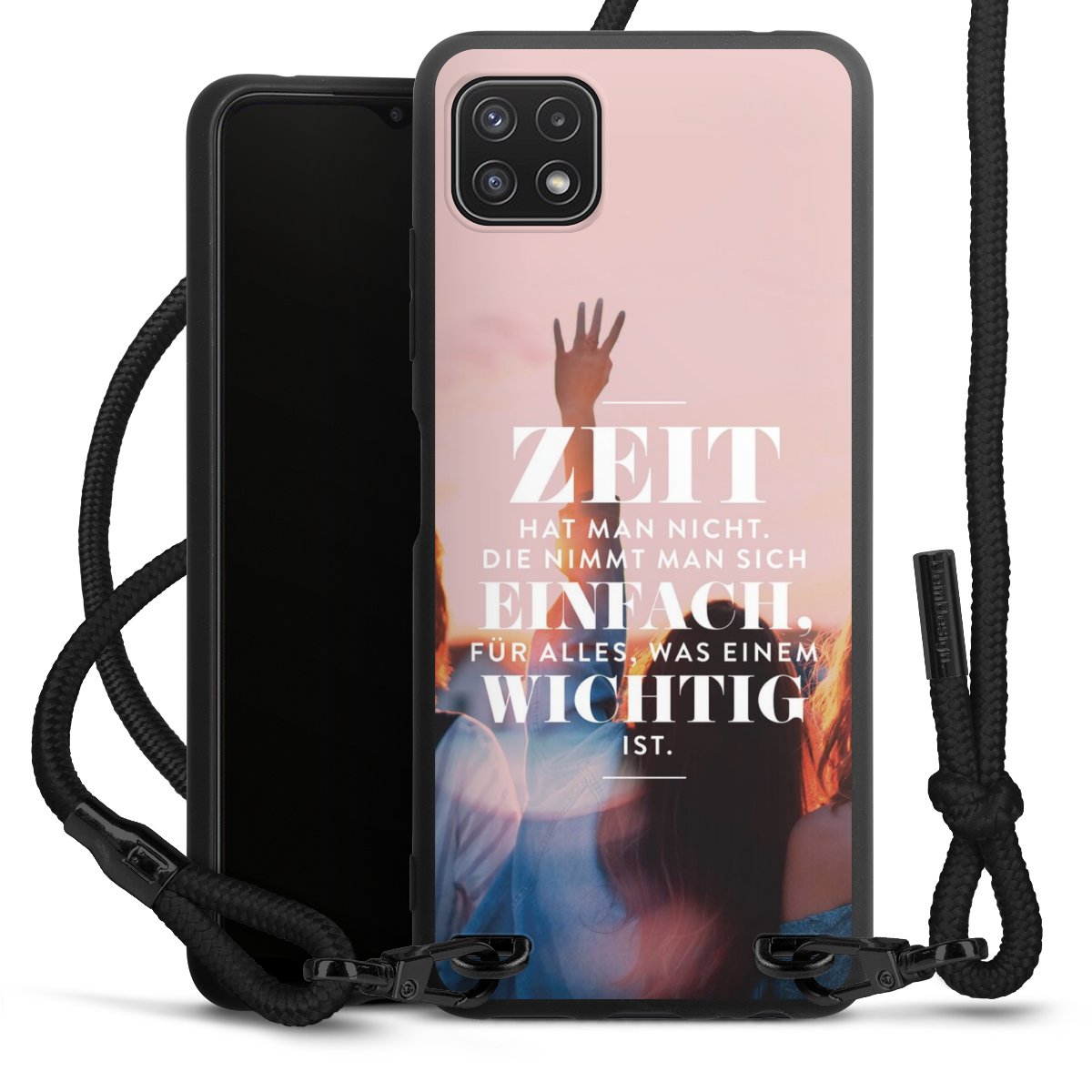Bei dieser Handyhülle nutzen wir das solide Direktdruck-Verfahren, weshalb der Druckbereich ausschließlich die Rückseite umfasst und der Rand hingegen unbedruckt bleibt. Das Case zum Umhängen kann sowohl unbedruckt, als auch vollflächig oder partiell bedruckt bestellt werden. Wähle für Dein Design entweder eines unserer exklusiven Shop-Motive, oder werde kreativ und gestalte Dein Wunschdesign zum Beispiel mit Fotos und Overlays selbst. Designe Dir Dein persönliches Trend-Accessoire und setze ein individuelles Statement auf den Straßen.