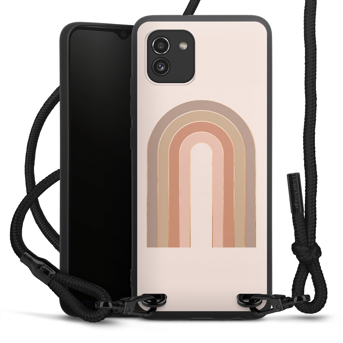 Die mattschwarze Silikonhülle besteht aus flexiblen TPU (thermoplastisches Polyurethan) und bietet robusten Schutz. Durch das langlebige, bruchsichere Material ist die Hülle biegsam und formbeständig zugleich. Die matte Oberfläche lässt Dein Design besser zur Geltung kommen und ist weniger anfällig für Fingerabdrücke und Schmutz. Das stylische Trend-Accessoire liegt griffig in der Hand und wird optimal von der Handykette aus Stoff (Polyester) ergänzt. Das geflochtene Stoffband ist ca. 1,70 Meter lang mit einem Durchmesser von ca. 0,5cm. Aufgrund der besonderen Knotentechnik ist das Band durch einfaches Ziehen in der Länge verstellbar. Als kleines i-Tüpfelchen haben wir das Band mit schicken Metall-Verschlüssen in Mattschwarz versehen.