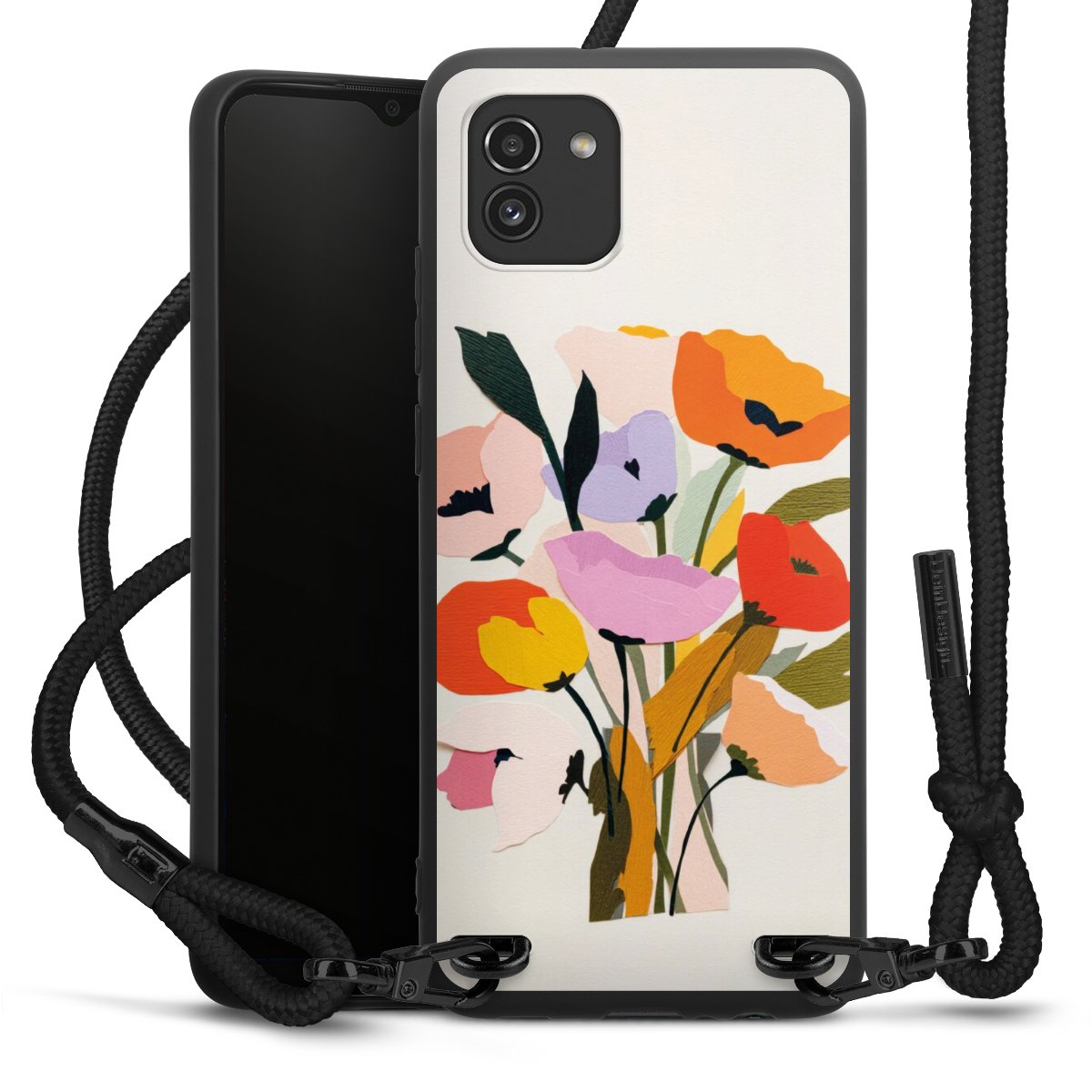 Die mattschwarze Silikonhülle besteht aus flexiblen TPU (thermoplastisches Polyurethan) und bietet robusten Schutz. Durch das langlebige, bruchsichere Material ist die Hülle biegsam und formbeständig zugleich. Die matte Oberfläche lässt Dein Design besser zur Geltung kommen und ist weniger anfällig für Fingerabdrücke und Schmutz. Das stylische Trend-Accessoire liegt griffig in der Hand und wird optimal von der Handykette aus Stoff (Polyester) ergänzt. Das geflochtene Stoffband ist ca. 1,70 Meter lang mit einem Durchmesser von ca. 0,5cm. Aufgrund der besonderen Knotentechnik ist das Band durch einfaches Ziehen in der Länge verstellbar. Als kleines i-Tüpfelchen haben wir das Band mit schicken Metall-Verschlüssen in Mattschwarz versehen.