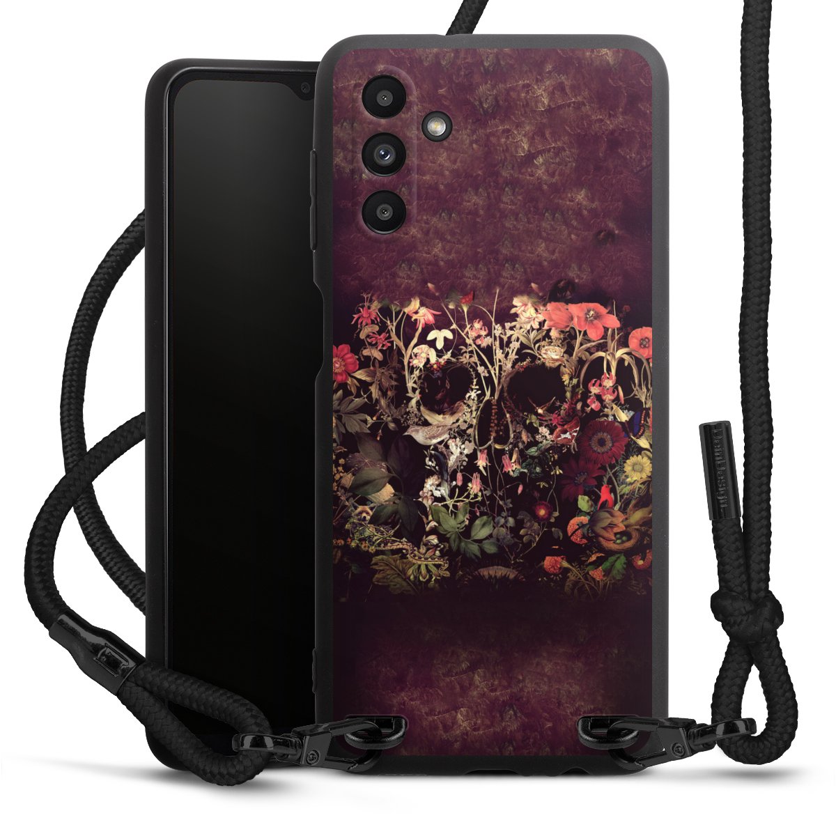 Die mattschwarze Silikonhülle besteht aus flexiblen TPU (thermoplastisches Polyurethan) und bietet robusten Schutz. Durch das langlebige, bruchsichere Material ist die Hülle biegsam und formbeständig zugleich. Die matte Oberfläche lässt Dein Design besser zur Geltung kommen und ist weniger anfällig für Fingerabdrücke und Schmutz. Das stylische Trend-Accessoire liegt griffig in der Hand und wird optimal von der Handykette aus Stoff (Polyester) ergänzt. Das geflochtene Stoffband ist ca. 1,70 Meter lang mit einem Durchmesser von ca. 0,5cm. Aufgrund der besonderen Knotentechnik ist das Band durch einfaches Ziehen in der Länge verstellbar. Als kleines i-Tüpfelchen haben wir das Band mit schicken Metall-Verschlüssen in Mattschwarz versehen.