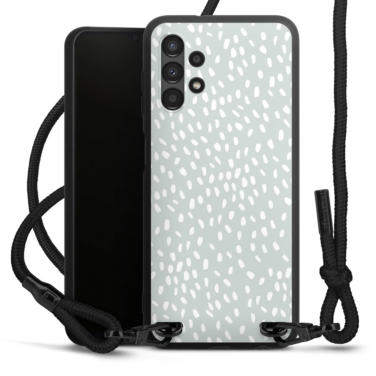 Bei dieser Handyhülle nutzen wir das solide Direktdruck-Verfahren, weshalb der Druckbereich ausschließlich die Rückseite umfasst und der Rand hingegen unbedruckt bleibt. Das Case zum Umhängen kann sowohl unbedruckt, als auch vollflächig oder partiell bedruckt bestellt werden. Wähle für Dein Design entweder eines unserer exklusiven Shop-Motive, oder werde kreativ und gestalte Dein Wunschdesign zum Beispiel mit Fotos und Overlays selbst. Designe Dir Dein persönliches Trend-Accessoire und setze ein individuelles Statement auf den Straßen.