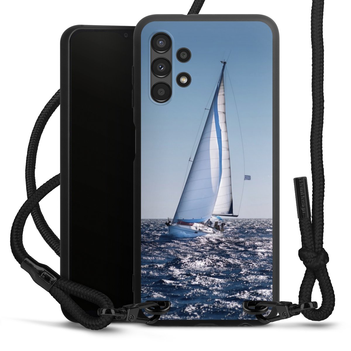 Bei dieser Handyhülle nutzen wir das solide Direktdruck-Verfahren, weshalb der Druckbereich ausschließlich die Rückseite umfasst und der Rand hingegen unbedruckt bleibt. Das Case zum Umhängen kann sowohl unbedruckt, als auch vollflächig oder partiell bedruckt bestellt werden. Wähle für Dein Design entweder eines unserer exklusiven Shop-Motive, oder werde kreativ und gestalte Dein Wunschdesign zum Beispiel mit Fotos und Overlays selbst. Designe Dir Dein persönliches Trend-Accessoire und setze ein individuelles Statement auf den Straßen.
