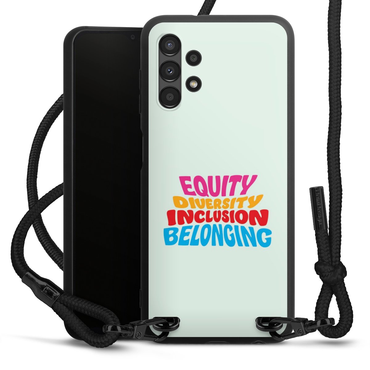 Bei dieser Handyhülle nutzen wir das solide Direktdruck-Verfahren, weshalb der Druckbereich ausschließlich die Rückseite umfasst und der Rand hingegen unbedruckt bleibt. Das Case zum Umhängen kann sowohl unbedruckt, als auch vollflächig oder partiell bedruckt bestellt werden. Wähle für Dein Design entweder eines unserer exklusiven Shop-Motive, oder werde kreativ und gestalte Dein Wunschdesign zum Beispiel mit Fotos und Overlays selbst. Designe Dir Dein persönliches Trend-Accessoire und setze ein individuelles Statement auf den Straßen.