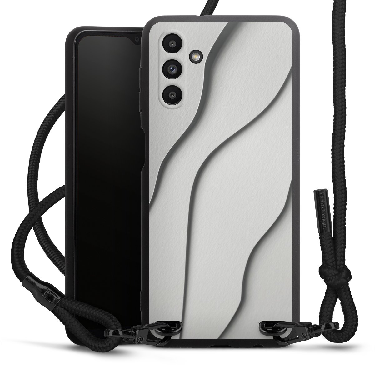 Die mattschwarze Silikonhülle besteht aus flexiblen TPU (thermoplastisches Polyurethan) und bietet robusten Schutz. Durch das langlebige, bruchsichere Material ist die Hülle biegsam und formbeständig zugleich. Die matte Oberfläche lässt Dein Design besser zur Geltung kommen und ist weniger anfällig für Fingerabdrücke und Schmutz. Das stylische Trend-Accessoire liegt griffig in der Hand und wird optimal von der Handykette aus Stoff (Polyester) ergänzt. Das geflochtene Stoffband ist ca. 1,70 Meter lang mit einem Durchmesser von ca. 0,5cm. Aufgrund der besonderen Knotentechnik ist das Band durch einfaches Ziehen in der Länge verstellbar. Als kleines i-Tüpfelchen haben wir das Band mit schicken Metall-Verschlüssen in Mattschwarz versehen.