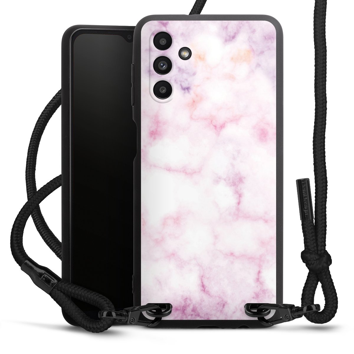 Die mattschwarze Silikonhülle besteht aus flexiblen TPU (thermoplastisches Polyurethan) und bietet robusten Schutz. Durch das langlebige, bruchsichere Material ist die Hülle biegsam und formbeständig zugleich. Die matte Oberfläche lässt Dein Design besser zur Geltung kommen und ist weniger anfällig für Fingerabdrücke und Schmutz. Das stylische Trend-Accessoire liegt griffig in der Hand und wird optimal von der Handykette aus Stoff (Polyester) ergänzt. Das geflochtene Stoffband ist ca. 1,70 Meter lang mit einem Durchmesser von ca. 0,5cm. Aufgrund der besonderen Knotentechnik ist das Band durch einfaches Ziehen in der Länge verstellbar. Als kleines i-Tüpfelchen haben wir das Band mit schicken Metall-Verschlüssen in Mattschwarz versehen.