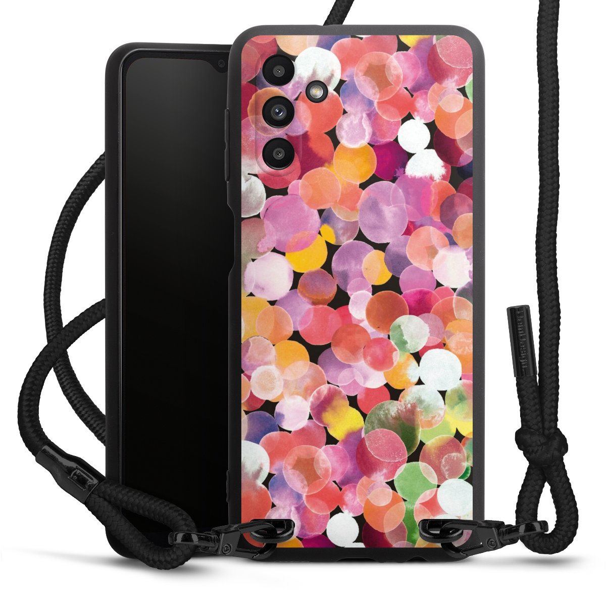 Bei dieser Handyhülle nutzen wir das solide Direktdruck-Verfahren, weshalb der Druckbereich ausschließlich die Rückseite umfasst und der Rand hingegen unbedruckt bleibt. Das Case zum Umhängen kann sowohl unbedruckt, als auch vollflächig oder partiell bedruckt bestellt werden. Wähle für Dein Design entweder eines unserer exklusiven Shop-Motive, oder werde kreativ und gestalte Dein Wunschdesign zum Beispiel mit Fotos und Overlays selbst. Designe Dir Dein persönliches Trend-Accessoire und setze ein individuelles Statement auf den Straßen.
