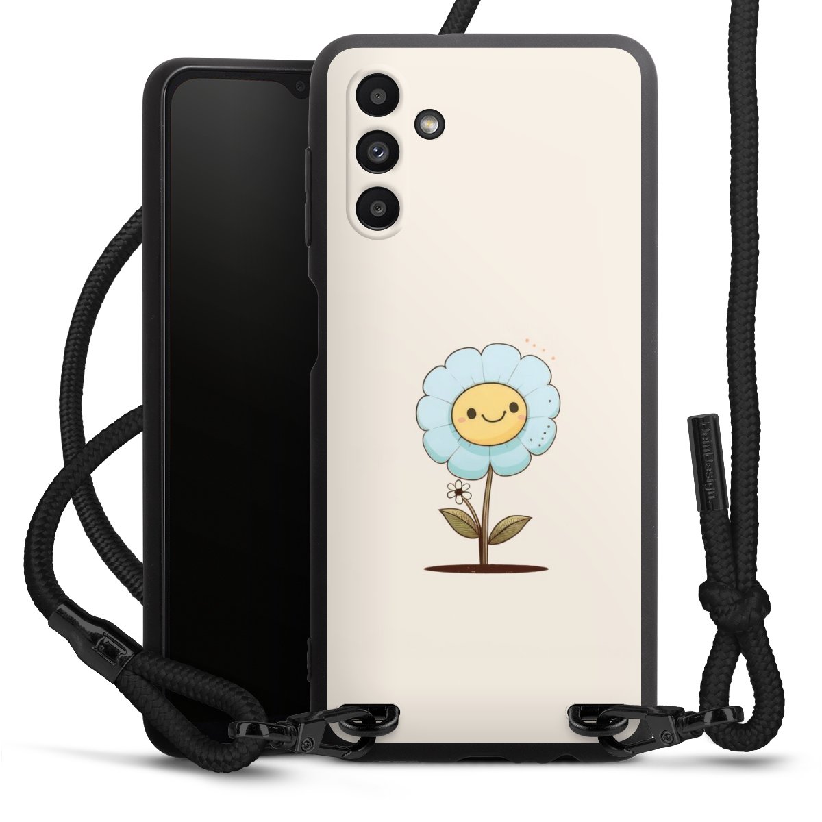 Die mattschwarze Silikonhülle besteht aus flexiblen TPU (thermoplastisches Polyurethan) und bietet robusten Schutz. Durch das langlebige, bruchsichere Material ist die Hülle biegsam und formbeständig zugleich. Die matte Oberfläche lässt Dein Design besser zur Geltung kommen und ist weniger anfällig für Fingerabdrücke und Schmutz. Das stylische Trend-Accessoire liegt griffig in der Hand und wird optimal von der Handykette aus Stoff (Polyester) ergänzt. Das geflochtene Stoffband ist ca. 1,70 Meter lang mit einem Durchmesser von ca. 0,5cm. Aufgrund der besonderen Knotentechnik ist das Band durch einfaches Ziehen in der Länge verstellbar. Als kleines i-Tüpfelchen haben wir das Band mit schicken Metall-Verschlüssen in Mattschwarz versehen.