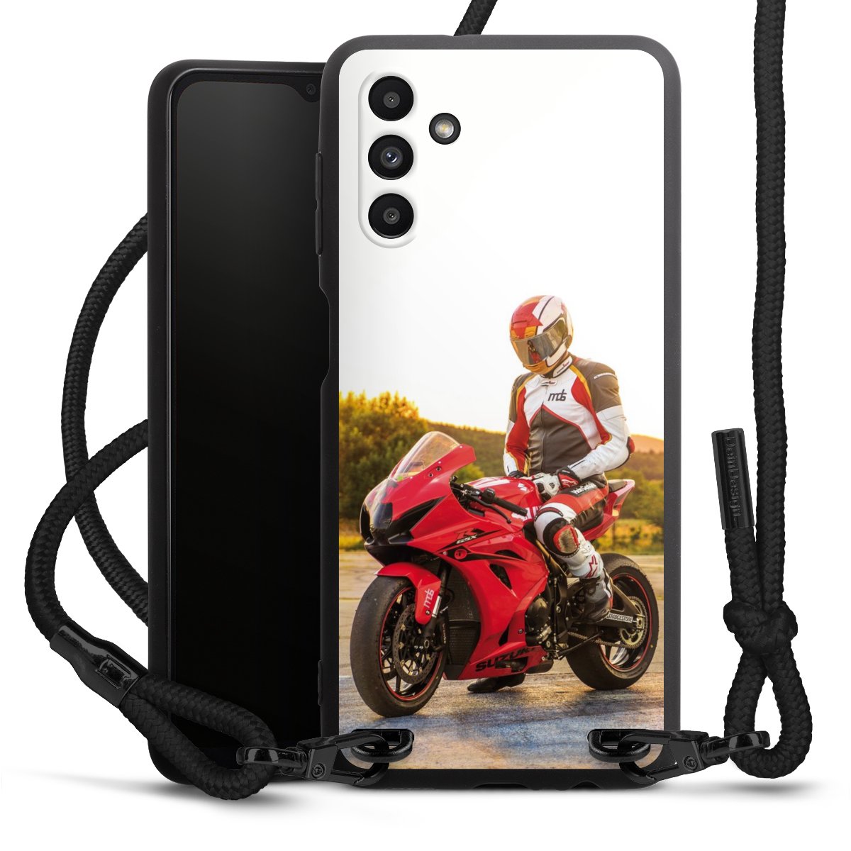 Bei dieser Handyhülle nutzen wir das solide Direktdruck-Verfahren, weshalb der Druckbereich ausschließlich die Rückseite umfasst und der Rand hingegen unbedruckt bleibt. Das Case zum Umhängen kann sowohl unbedruckt, als auch vollflächig oder partiell bedruckt bestellt werden. Wähle für Dein Design entweder eines unserer exklusiven Shop-Motive, oder werde kreativ und gestalte Dein Wunschdesign zum Beispiel mit Fotos und Overlays selbst. Designe Dir Dein persönliches Trend-Accessoire und setze ein individuelles Statement auf den Straßen.