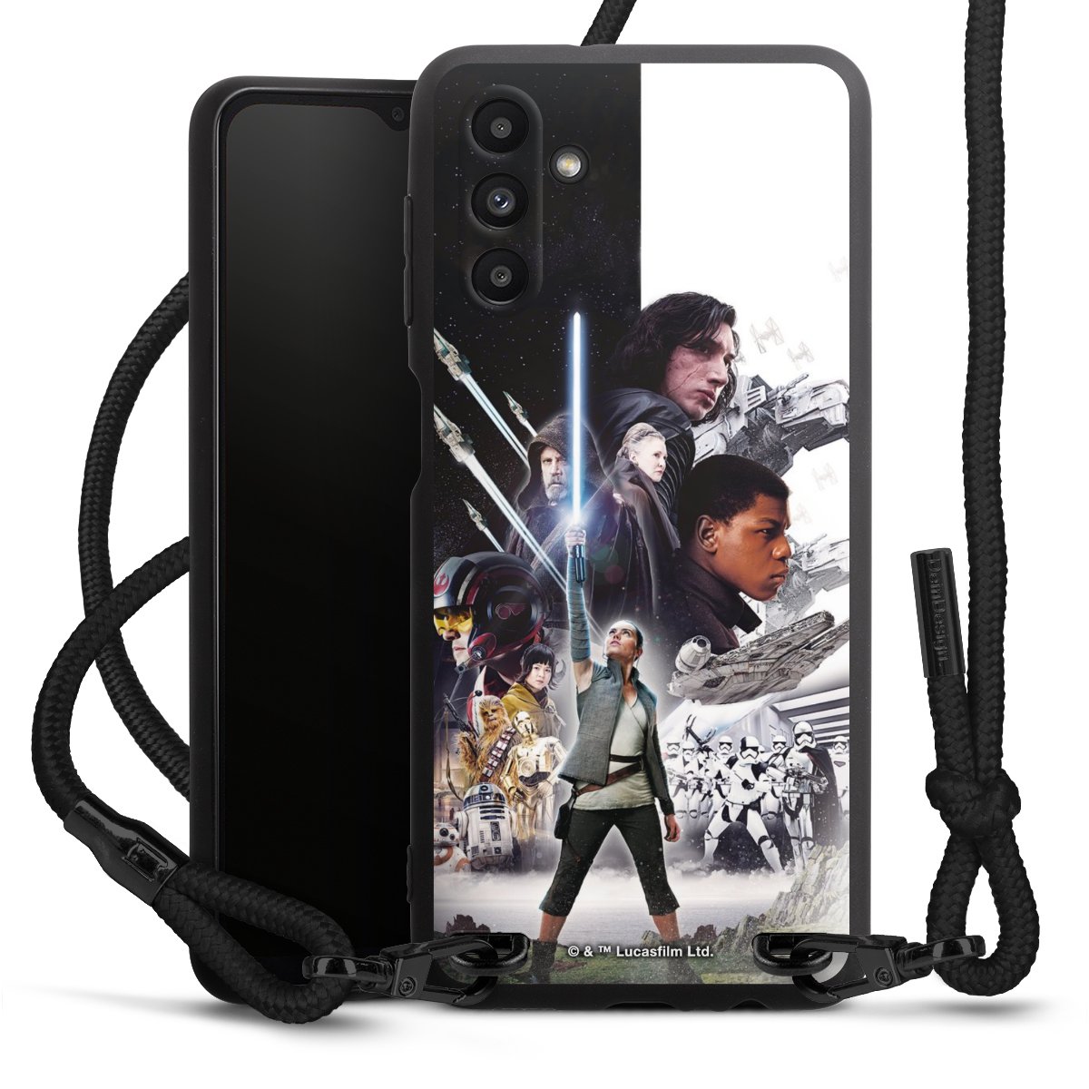 Darth Vader, C3PO, R2D2 und Meister Yoda findest Du in unserem Star Wars Shop auf DeinDesign. Natürlich gibt es auch Star Wars Handyhüllen mit den legendären Charakteren Luke Skywalker, Prinzessin Leia und Han Solo, den Helden der ersten Saga. Wer jedoch die Hauptfiguren der neuen Star Wars Filme ins Herz geschlossen hat, kann auch Finn und Rey mit ihren mächtigen Waffen auf der Rückseite seines Smartphones haben. Die vielseitigen Schutzhüllen in verschiedenen Ausführungen sind das perfekte Geschenk für alle Star Wars Fans, die ihrem Smartphone eine individuelle Note verleihen wollen.