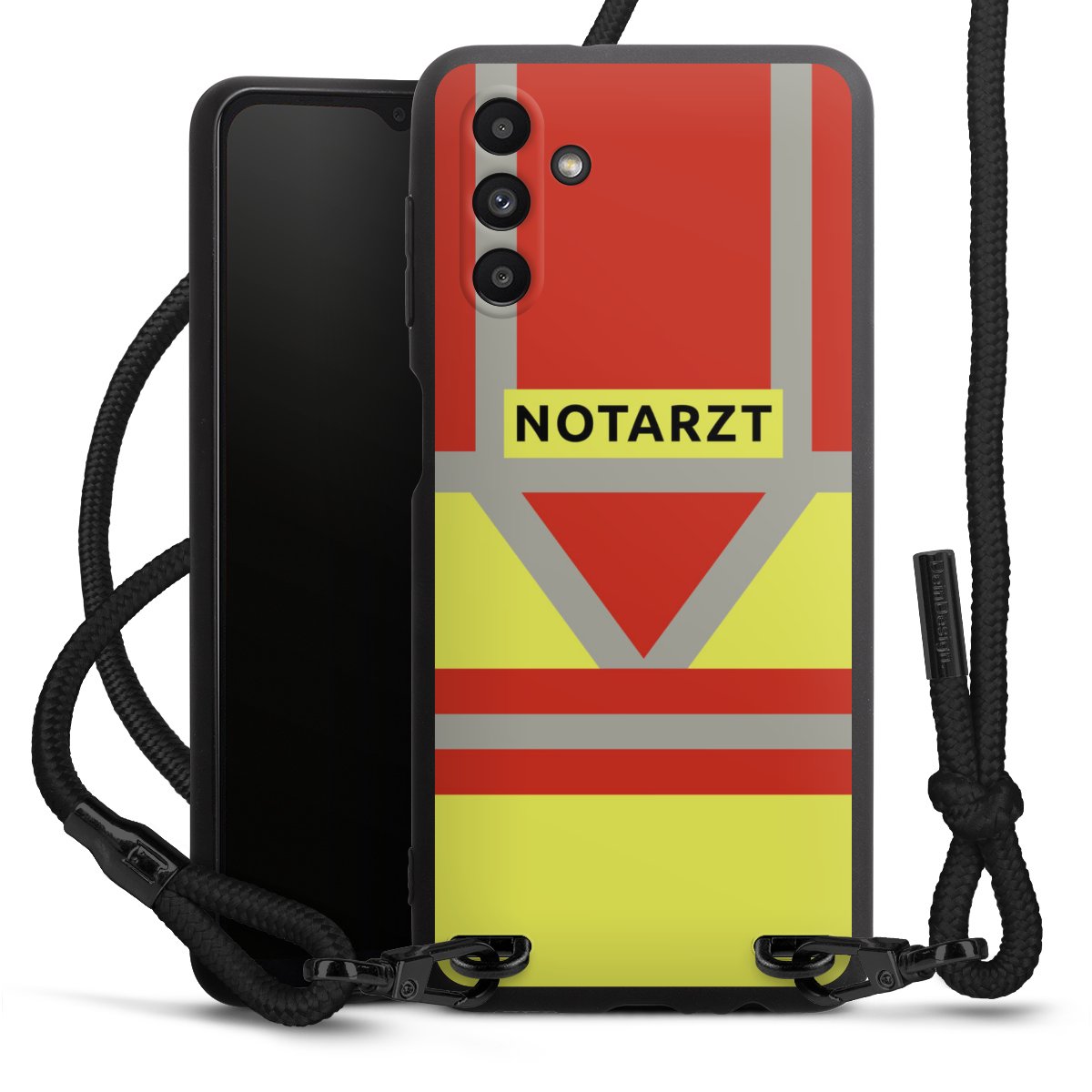Die mattschwarze Silikonhülle besteht aus flexiblen TPU (thermoplastisches Polyurethan) und bietet robusten Schutz. Durch das langlebige, bruchsichere Material ist die Hülle biegsam und formbeständig zugleich. Die matte Oberfläche lässt Dein Design besser zur Geltung kommen und ist weniger anfällig für Fingerabdrücke und Schmutz. Das stylische Trend-Accessoire liegt griffig in der Hand und wird optimal von der Handykette aus Stoff (Polyester) ergänzt. Das geflochtene Stoffband ist ca. 1,70 Meter lang mit einem Durchmesser von ca. 0,5cm. Aufgrund der besonderen Knotentechnik ist das Band durch einfaches Ziehen in der Länge verstellbar. Als kleines i-Tüpfelchen haben wir das Band mit schicken Metall-Verschlüssen in Mattschwarz versehen.