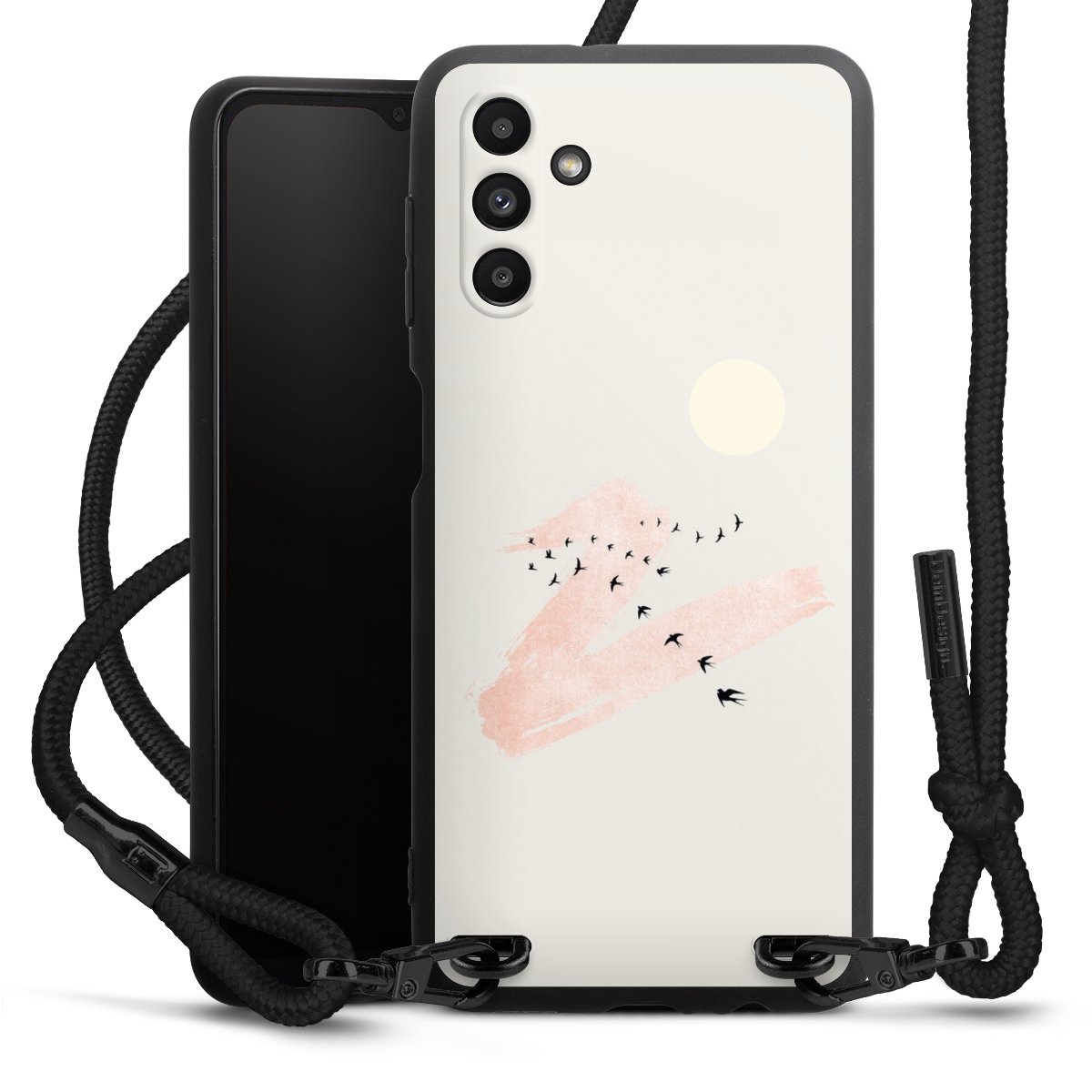 Bei dieser Handyhülle nutzen wir das solide Direktdruck-Verfahren, weshalb der Druckbereich ausschließlich die Rückseite umfasst und der Rand hingegen unbedruckt bleibt. Das Case zum Umhängen kann sowohl unbedruckt, als auch vollflächig oder partiell bedruckt bestellt werden. Wähle für Dein Design entweder eines unserer exklusiven Shop-Motive, oder werde kreativ und gestalte Dein Wunschdesign zum Beispiel mit Fotos und Overlays selbst. Designe Dir Dein persönliches Trend-Accessoire und setze ein individuelles Statement auf den Straßen.