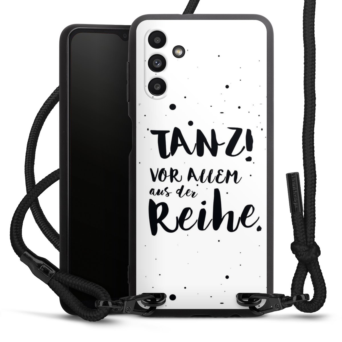 Bei dieser Handyhülle nutzen wir das solide Direktdruck-Verfahren, weshalb der Druckbereich ausschließlich die Rückseite umfasst und der Rand hingegen unbedruckt bleibt. Das Case zum Umhängen kann sowohl unbedruckt, als auch vollflächig oder partiell bedruckt bestellt werden. Wähle für Dein Design entweder eines unserer exklusiven Shop-Motive, oder werde kreativ und gestalte Dein Wunschdesign zum Beispiel mit Fotos und Overlays selbst. Designe Dir Dein persönliches Trend-Accessoire und setze ein individuelles Statement auf den Straßen.