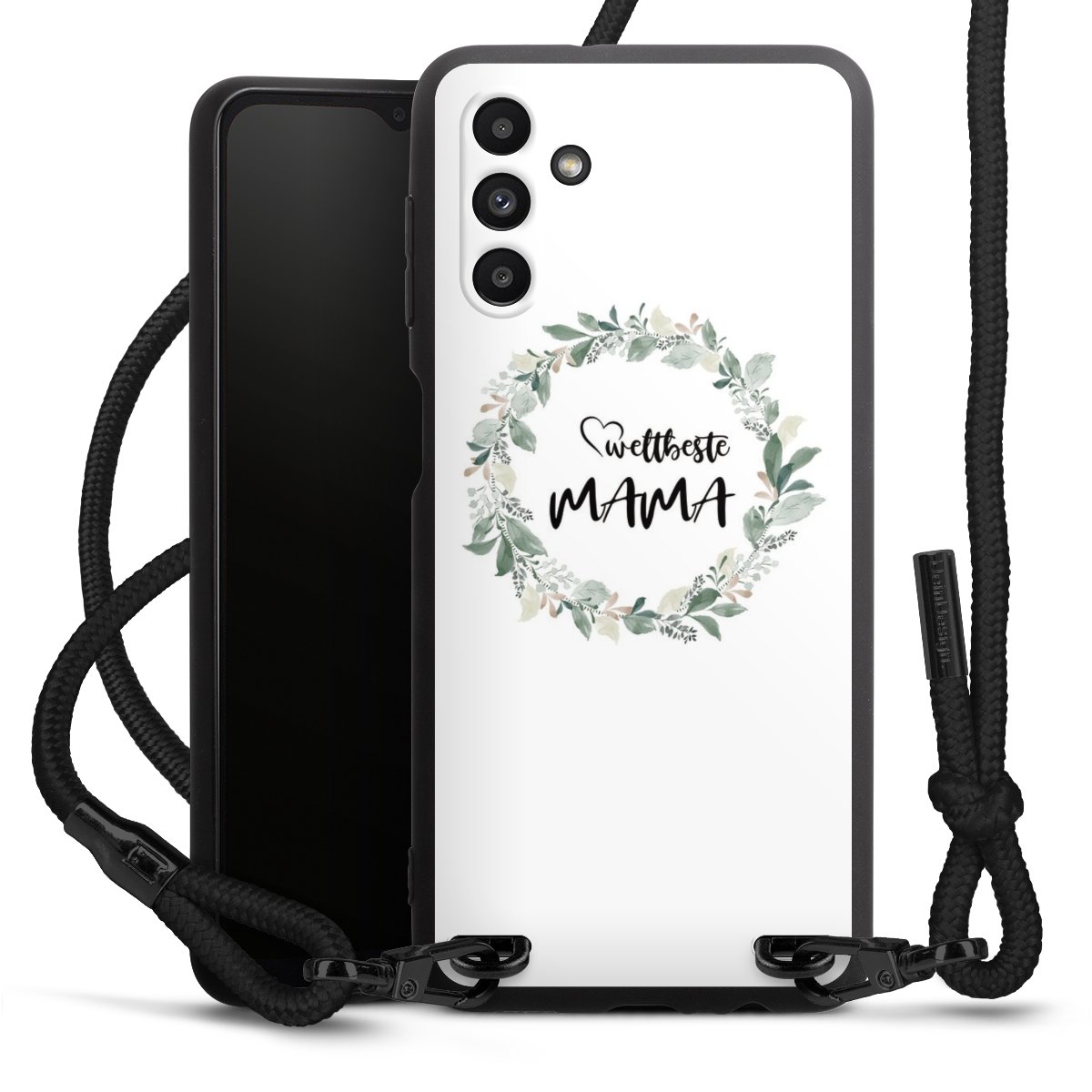 Die mattschwarze Silikonhülle besteht aus flexiblen TPU (thermoplastisches Polyurethan) und bietet robusten Schutz. Durch das langlebige, bruchsichere Material ist die Hülle biegsam und formbeständig zugleich. Die matte Oberfläche lässt Dein Design besser zur Geltung kommen und ist weniger anfällig für Fingerabdrücke und Schmutz. Das stylische Trend-Accessoire liegt griffig in der Hand und wird optimal von der Handykette aus Stoff (Polyester) ergänzt. Das geflochtene Stoffband ist ca. 1,70 Meter lang mit einem Durchmesser von ca. 0,5cm. Aufgrund der besonderen Knotentechnik ist das Band durch einfaches Ziehen in der Länge verstellbar. Als kleines i-Tüpfelchen haben wir das Band mit schicken Metall-Verschlüssen in Mattschwarz versehen.