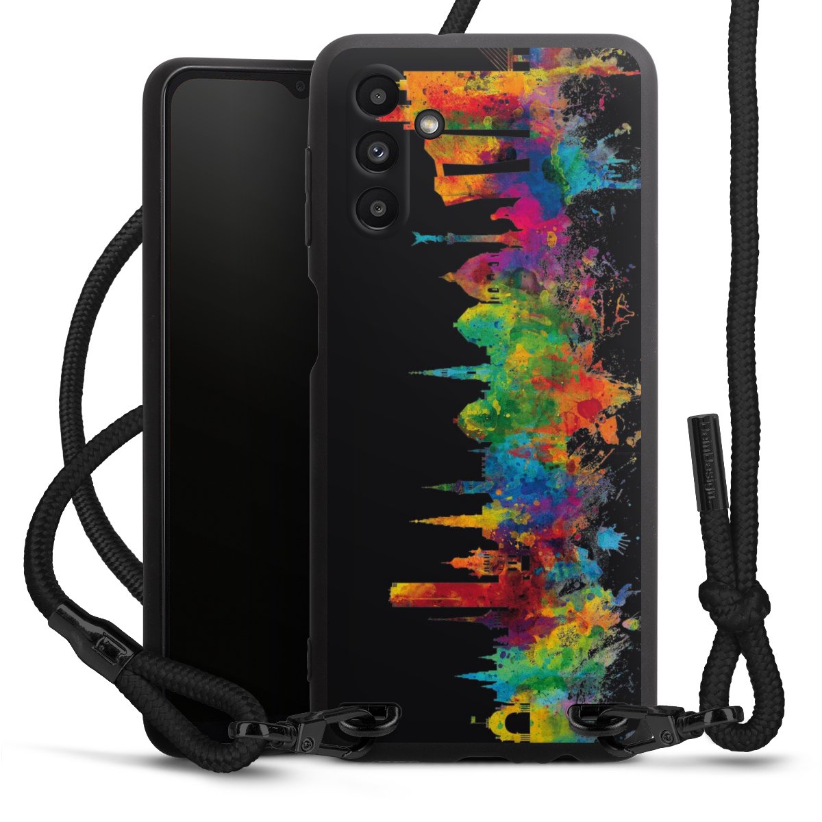 Bei dieser Handyhülle nutzen wir das solide Direktdruck-Verfahren, weshalb der Druckbereich ausschließlich die Rückseite umfasst und der Rand hingegen unbedruckt bleibt. Das Case zum Umhängen kann sowohl unbedruckt, als auch vollflächig oder partiell bedruckt bestellt werden. Wähle für Dein Design entweder eines unserer exklusiven Shop-Motive, oder werde kreativ und gestalte Dein Wunschdesign zum Beispiel mit Fotos und Overlays selbst. Designe Dir Dein persönliches Trend-Accessoire und setze ein individuelles Statement auf den Straßen.