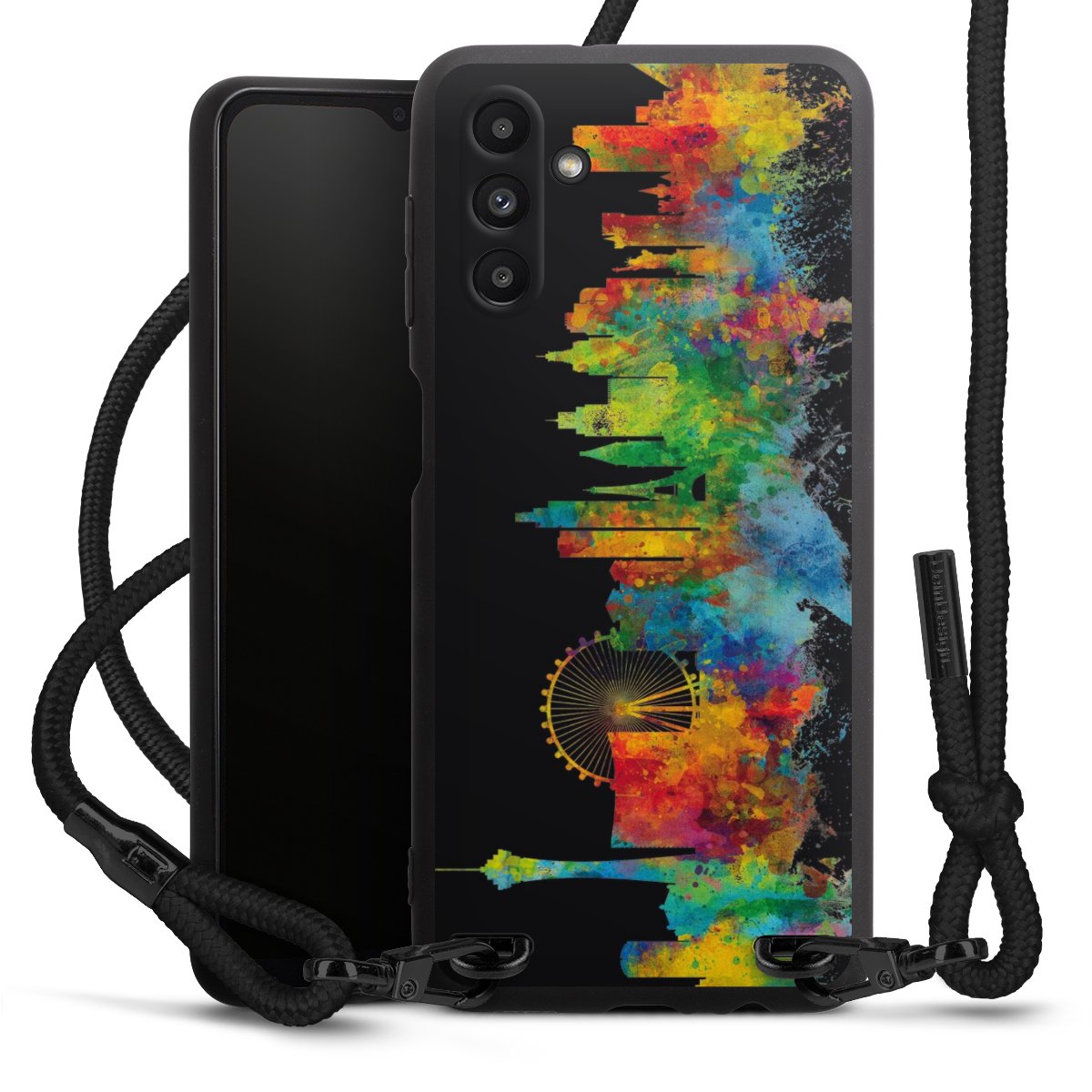 Bei dieser Handyhülle nutzen wir das solide Direktdruck-Verfahren, weshalb der Druckbereich ausschließlich die Rückseite umfasst und der Rand hingegen unbedruckt bleibt. Das Case zum Umhängen kann sowohl unbedruckt, als auch vollflächig oder partiell bedruckt bestellt werden. Wähle für Dein Design entweder eines unserer exklusiven Shop-Motive, oder werde kreativ und gestalte Dein Wunschdesign zum Beispiel mit Fotos und Overlays selbst. Designe Dir Dein persönliches Trend-Accessoire und setze ein individuelles Statement auf den Straßen.