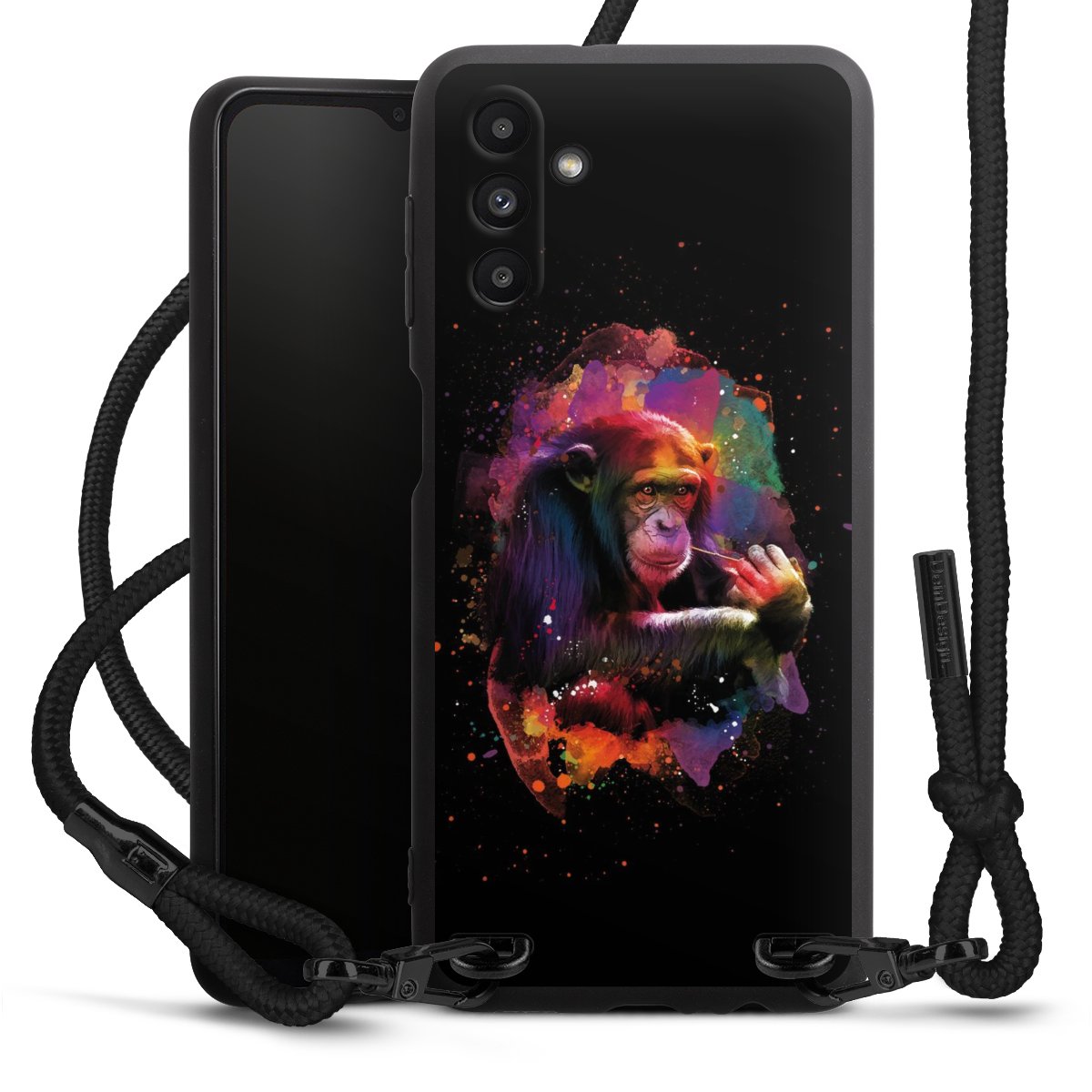 Die mattschwarze Silikonhülle besteht aus flexiblen TPU (thermoplastisches Polyurethan) und bietet robusten Schutz. Durch das langlebige, bruchsichere Material ist die Hülle biegsam und formbeständig zugleich. Die matte Oberfläche lässt Dein Design besser zur Geltung kommen und ist weniger anfällig für Fingerabdrücke und Schmutz. Das stylische Trend-Accessoire liegt griffig in der Hand und wird optimal von der Handykette aus Stoff (Polyester) ergänzt. Das geflochtene Stoffband ist ca. 1,70 Meter lang mit einem Durchmesser von ca. 0,5cm. Aufgrund der besonderen Knotentechnik ist das Band durch einfaches Ziehen in der Länge verstellbar. Als kleines i-Tüpfelchen haben wir das Band mit schicken Metall-Verschlüssen in Mattschwarz versehen.