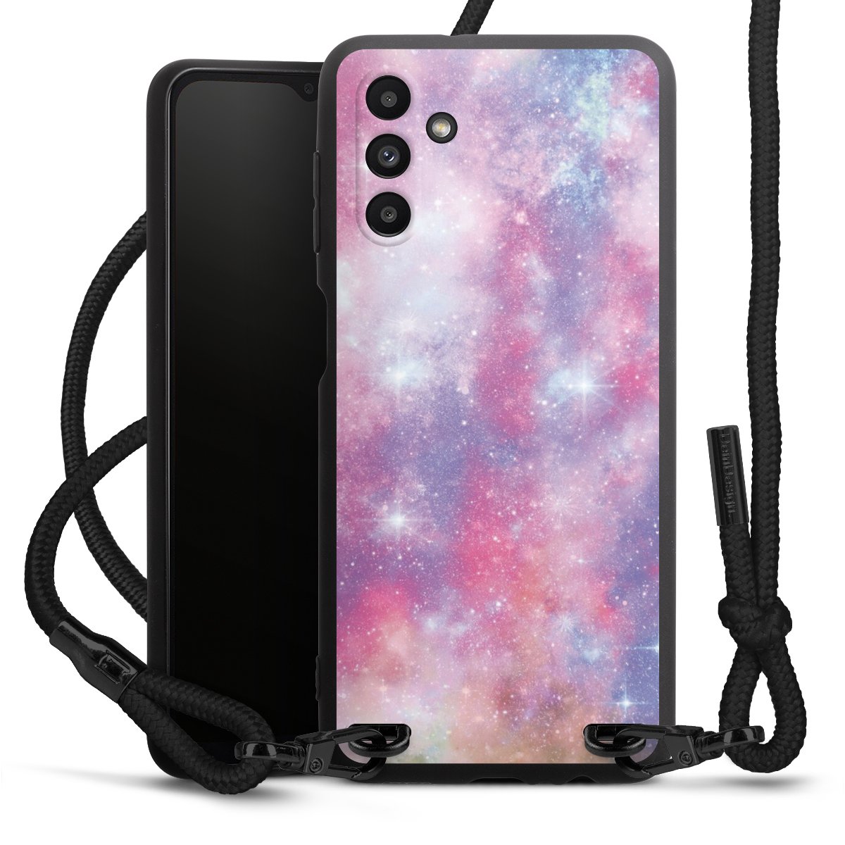 Bei dieser Handyhülle nutzen wir das solide Direktdruck-Verfahren, weshalb der Druckbereich ausschließlich die Rückseite umfasst und der Rand hingegen unbedruckt bleibt. Das Case zum Umhängen kann sowohl unbedruckt, als auch vollflächig oder partiell bedruckt bestellt werden. Wähle für Dein Design entweder eines unserer exklusiven Shop-Motive, oder werde kreativ und gestalte Dein Wunschdesign zum Beispiel mit Fotos und Overlays selbst. Designe Dir Dein persönliches Trend-Accessoire und setze ein individuelles Statement auf den Straßen.