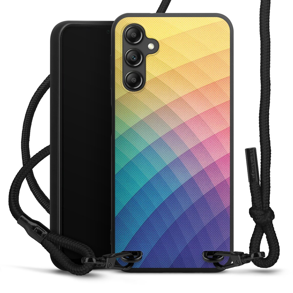 Bei dieser Handyhülle nutzen wir das solide Direktdruck-Verfahren, weshalb der Druckbereich ausschließlich die Rückseite umfasst und der Rand hingegen unbedruckt bleibt. Das Case zum Umhängen kann sowohl unbedruckt, als auch vollflächig oder partiell bedruckt bestellt werden. Wähle für Dein Design entweder eines unserer exklusiven Shop-Motive, oder werde kreativ und gestalte Dein Wunschdesign zum Beispiel mit Fotos und Overlays selbst. Designe Dir Dein persönliches Trend-Accessoire und setze ein individuelles Statement auf den Straßen.