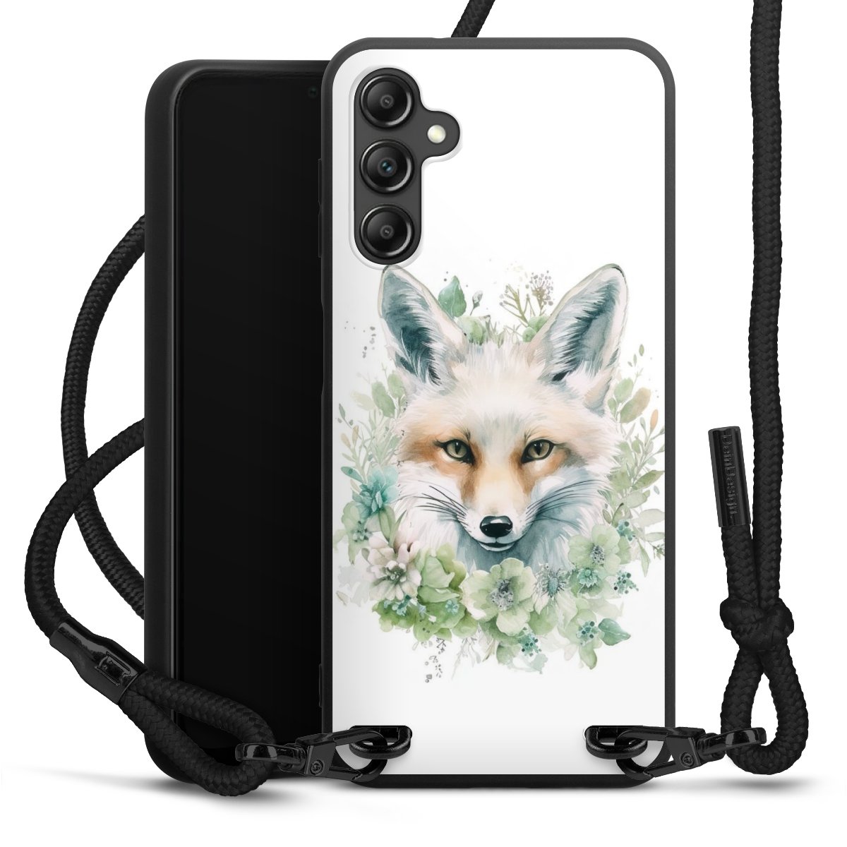 Die mattschwarze Silikonhülle besteht aus flexiblen TPU (thermoplastisches Polyurethan) und bietet robusten Schutz. Durch das langlebige, bruchsichere Material ist die Hülle biegsam und formbeständig zugleich. Die matte Oberfläche lässt Dein Design besser zur Geltung kommen und ist weniger anfällig für Fingerabdrücke und Schmutz. Das stylische Trend-Accessoire liegt griffig in der Hand und wird optimal von der Handykette aus Stoff (Polyester) ergänzt. Das geflochtene Stoffband ist ca. 1,70 Meter lang mit einem Durchmesser von ca. 0,5cm. Aufgrund der besonderen Knotentechnik ist das Band durch einfaches Ziehen in der Länge verstellbar. Als kleines i-Tüpfelchen haben wir das Band mit schicken Metall-Verschlüssen in Mattschwarz versehen.
