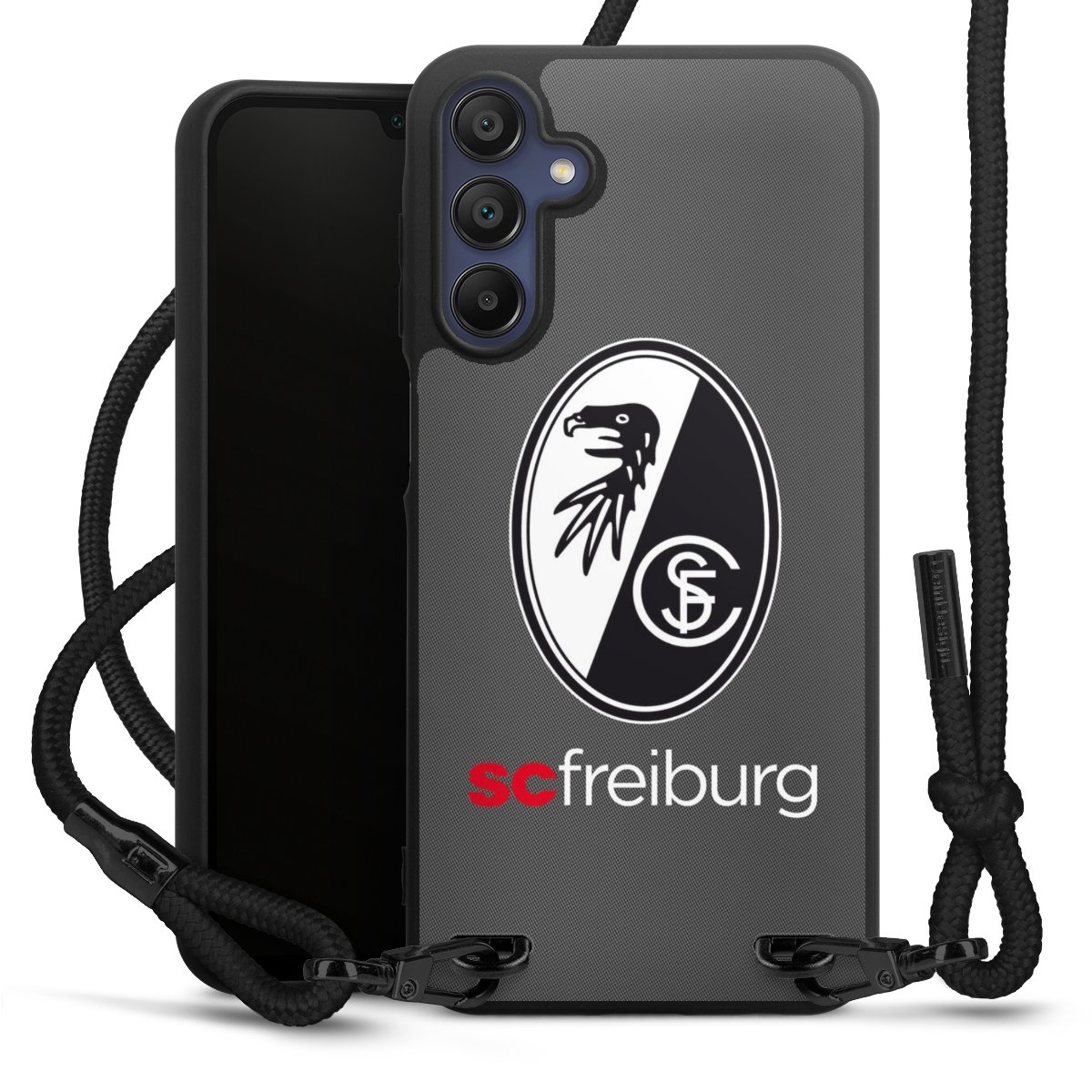 Bei DeinDesign kannst Du Dir eine individuelle SC-Freiburg-Handyhülle aussuchen, auf der das stilvolle schwarz-weiße Logo mit dem Greifenkopf zu sehen ist. Durch eine solche Hülle erhält Dein Smartphone ein unverkennbar individuelles Design. Der SC-Freiburg-Shop bietet lizensierte Fanartikel für alle Fans der Breisgau-Brasilianer.
