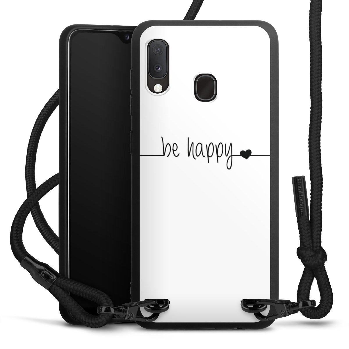 Die mattschwarze Silikonhülle besteht aus flexiblen TPU (thermoplastisches Polyurethan) und bietet robusten Schutz. Durch das langlebige, bruchsichere Material ist die Hülle biegsam und formbeständig zugleich. Die matte Oberfläche lässt Dein Design besser zur Geltung kommen und ist weniger anfällig für Fingerabdrücke und Schmutz. Das stylische Trend-Accessoire liegt griffig in der Hand und wird optimal von der Handykette aus Stoff (Polyester) ergänzt. Das geflochtene Stoffband ist ca. 1,70 Meter lang mit einem Durchmesser von ca. 0,5cm. Aufgrund der besonderen Knotentechnik ist das Band durch einfaches Ziehen in der Länge verstellbar. Als kleines i-Tüpfelchen haben wir das Band mit schicken Metall-Verschlüssen in Mattschwarz versehen.