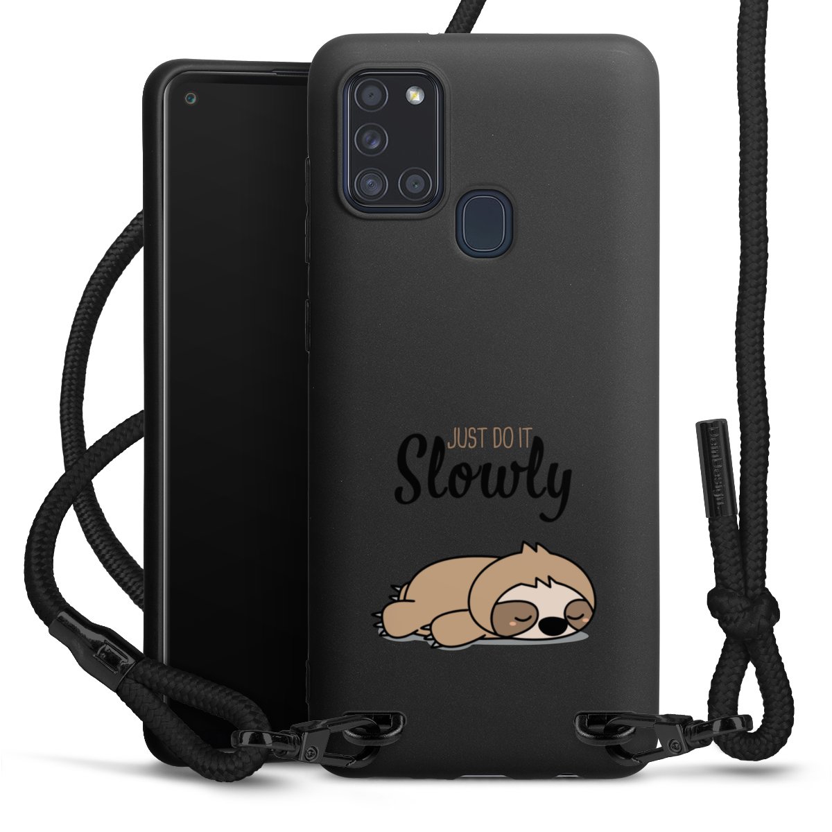 Die mattschwarze Silikonhülle besteht aus flexiblen TPU (thermoplastisches Polyurethan) und bietet robusten Schutz. Durch das langlebige, bruchsichere Material ist die Hülle biegsam und formbeständig zugleich. Die matte Oberfläche lässt Dein Design besser zur Geltung kommen und ist weniger anfällig für Fingerabdrücke und Schmutz. Das stylische Trend-Accessoire liegt griffig in der Hand und wird optimal von der Handykette aus Stoff (Polyester) ergänzt. Das geflochtene Stoffband ist ca. 1,70 Meter lang mit einem Durchmesser von ca. 0,5cm. Aufgrund der besonderen Knotentechnik ist das Band durch einfaches Ziehen in der Länge verstellbar. Als kleines i-Tüpfelchen haben wir das Band mit schicken Metall-Verschlüssen in Mattschwarz versehen.