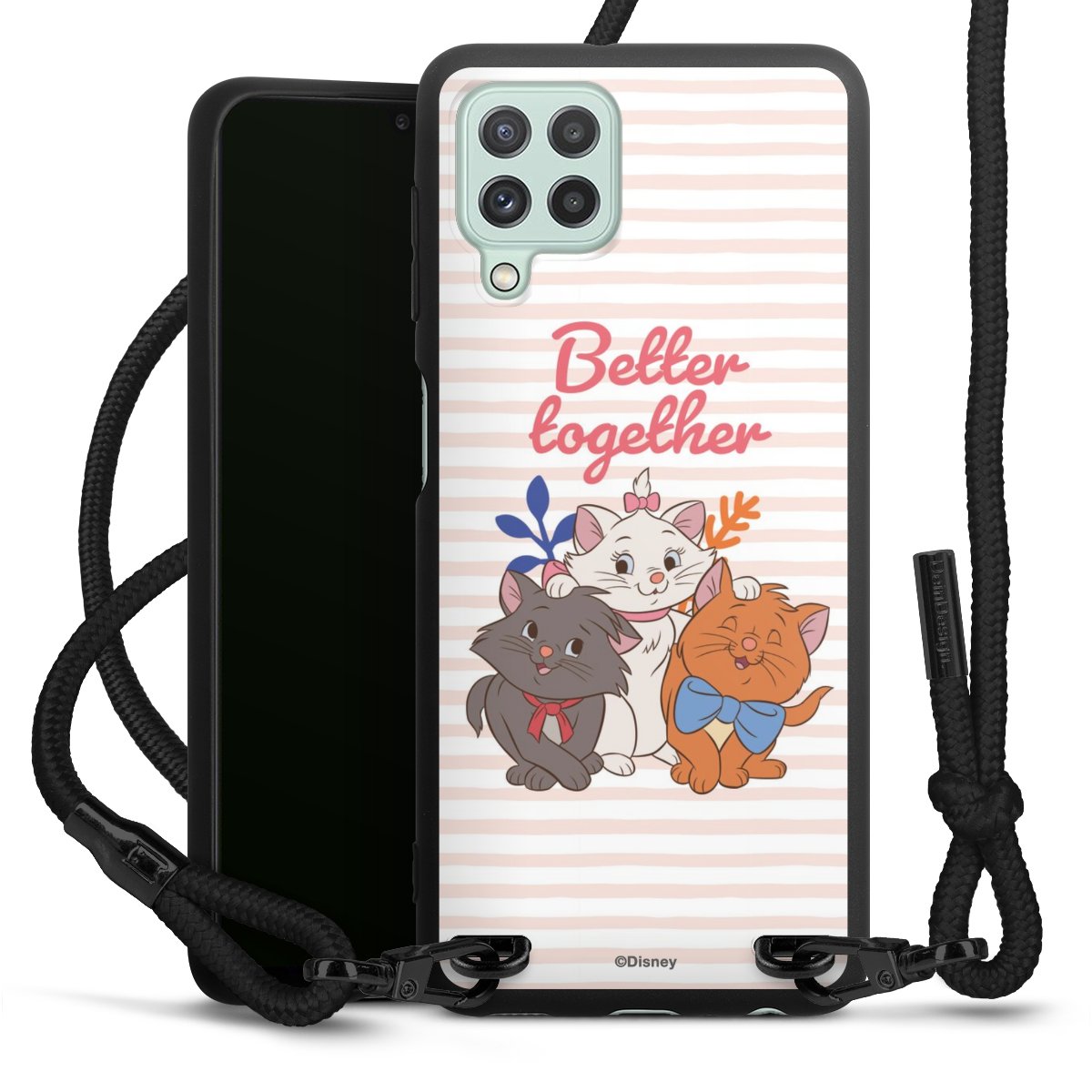 Die mattschwarze Silikonhülle besteht aus flexiblen TPU (thermoplastisches Polyurethan) und bietet robusten Schutz. Durch das langlebige, bruchsichere Material ist die Hülle biegsam und formbeständig zugleich. Die matte Oberfläche lässt Dein Design besser zur Geltung kommen und ist weniger anfällig für Fingerabdrücke und Schmutz. Das stylische Trend-Accessoire liegt griffig in der Hand und wird optimal von der Handykette aus Stoff (Polyester) ergänzt. Das geflochtene Stoffband ist ca. 1,70 Meter lang mit einem Durchmesser von ca. 0,5cm. Aufgrund der besonderen Knotentechnik ist das Band durch einfaches Ziehen in der Länge verstellbar. Als kleines i-Tüpfelchen haben wir das Band mit schicken Metall-Verschlüssen in Mattschwarz versehen.