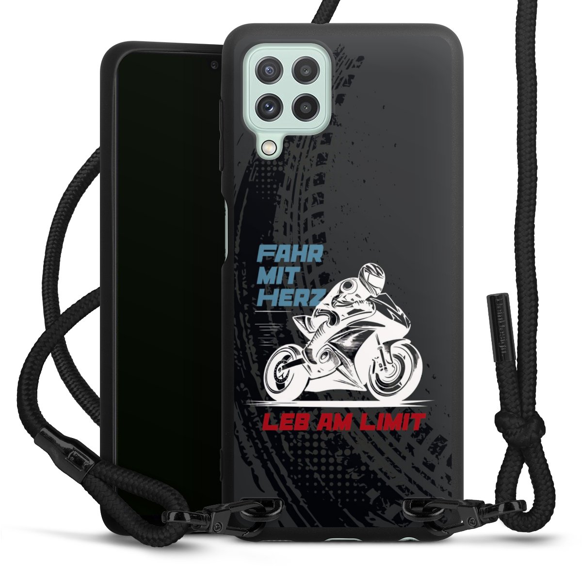 Bei dieser Handyhülle nutzen wir das solide Direktdruck-Verfahren, weshalb der Druckbereich ausschließlich die Rückseite umfasst und der Rand hingegen unbedruckt bleibt. Das Case zum Umhängen kann sowohl unbedruckt, als auch vollflächig oder partiell bedruckt bestellt werden. Wähle für Dein Design entweder eines unserer exklusiven Shop-Motive, oder werde kreativ und gestalte Dein Wunschdesign zum Beispiel mit Fotos und Overlays selbst. Designe Dir Dein persönliches Trend-Accessoire und setze ein individuelles Statement auf den Straßen.