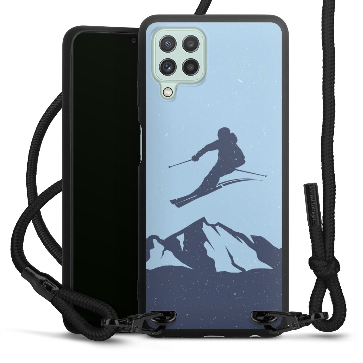 Bei dieser Handyhülle nutzen wir das solide Direktdruck-Verfahren, weshalb der Druckbereich ausschließlich die Rückseite umfasst und der Rand hingegen unbedruckt bleibt. Das Case zum Umhängen kann sowohl unbedruckt, als auch vollflächig oder partiell bedruckt bestellt werden. Wähle für Dein Design entweder eines unserer exklusiven Shop-Motive, oder werde kreativ und gestalte Dein Wunschdesign zum Beispiel mit Fotos und Overlays selbst. Designe Dir Dein persönliches Trend-Accessoire und setze ein individuelles Statement auf den Straßen.