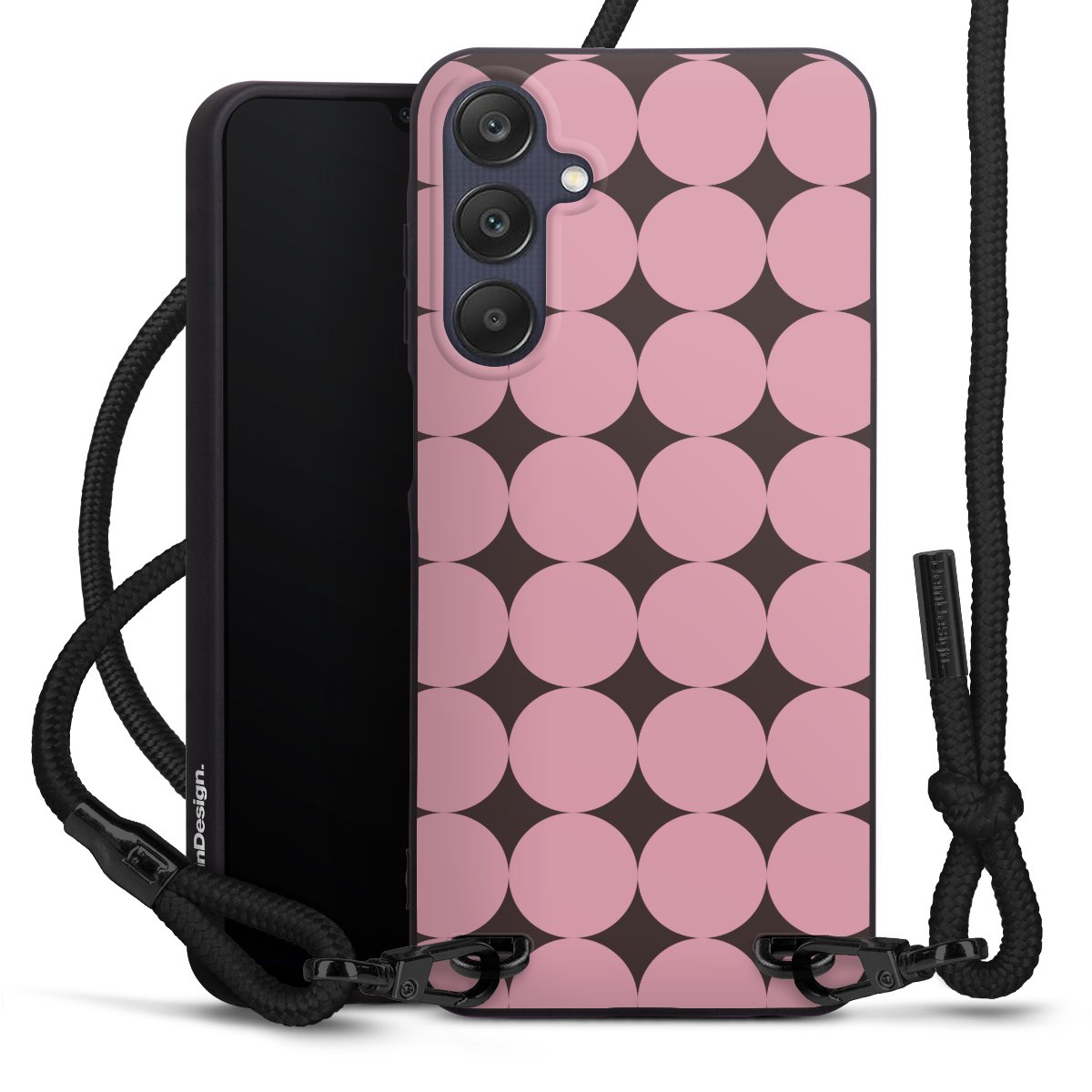 Pure Black: Handyhülle, Stoffband und Metalldetails in stylischem Mattschwarz.