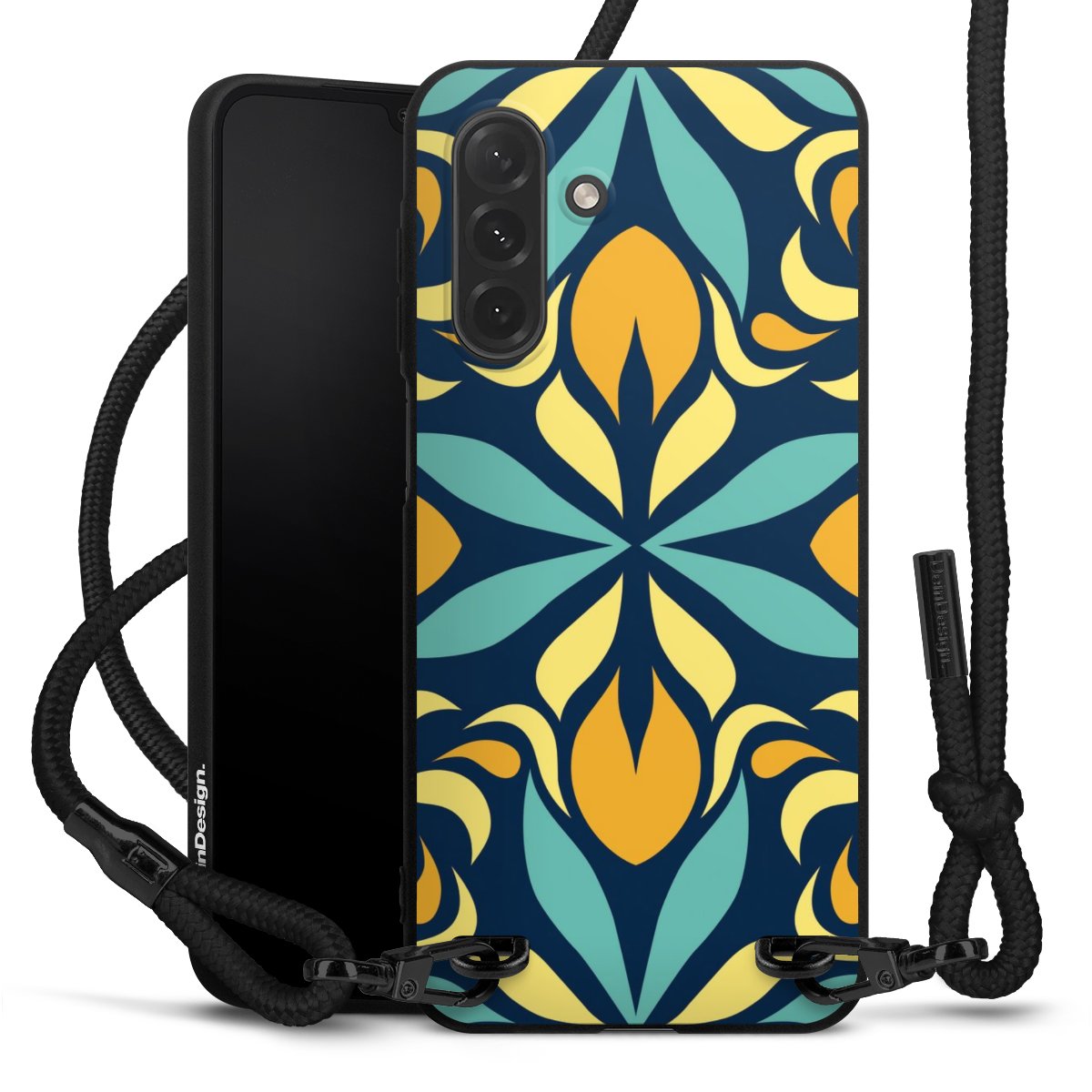 Die mattschwarze Silikonhülle besteht aus flexiblen TPU (thermoplastisches Polyurethan) und bietet robusten Schutz. Durch das langlebige, bruchsichere Material ist die Hülle biegsam und formbeständig zugleich. Die matte Oberfläche lässt Dein Design besser zur Geltung kommen und ist weniger anfällig für Fingerabdrücke und Schmutz. Das stylische Trend-Accessoire liegt griffig in der Hand und wird optimal von der Handykette aus Stoff (Polyester) ergänzt. Das geflochtene Stoffband ist ca. 1,70 Meter lang mit einem Durchmesser von ca. 0,5cm. Aufgrund der besonderen Knotentechnik ist das Band durch einfaches Ziehen in der Länge verstellbar. Als kleines i-Tüpfelchen haben wir das Band mit schicken Metall-Verschlüssen in Mattschwarz versehen.