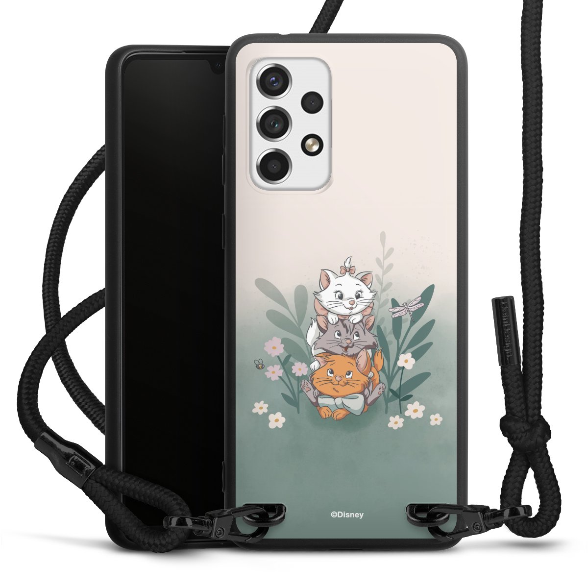 Die mattschwarze Silikonhülle besteht aus flexiblen TPU (thermoplastisches Polyurethan) und bietet robusten Schutz. Durch das langlebige, bruchsichere Material ist die Hülle biegsam und formbeständig zugleich. Die matte Oberfläche lässt Dein Design besser zur Geltung kommen und ist weniger anfällig für Fingerabdrücke und Schmutz. Das stylische Trend-Accessoire liegt griffig in der Hand und wird optimal von der Handykette aus Stoff (Polyester) ergänzt. Das geflochtene Stoffband ist ca. 1,70 Meter lang mit einem Durchmesser von ca. 0,5cm. Aufgrund der besonderen Knotentechnik ist das Band durch einfaches Ziehen in der Länge verstellbar. Als kleines i-Tüpfelchen haben wir das Band mit schicken Metall-Verschlüssen in Mattschwarz versehen.