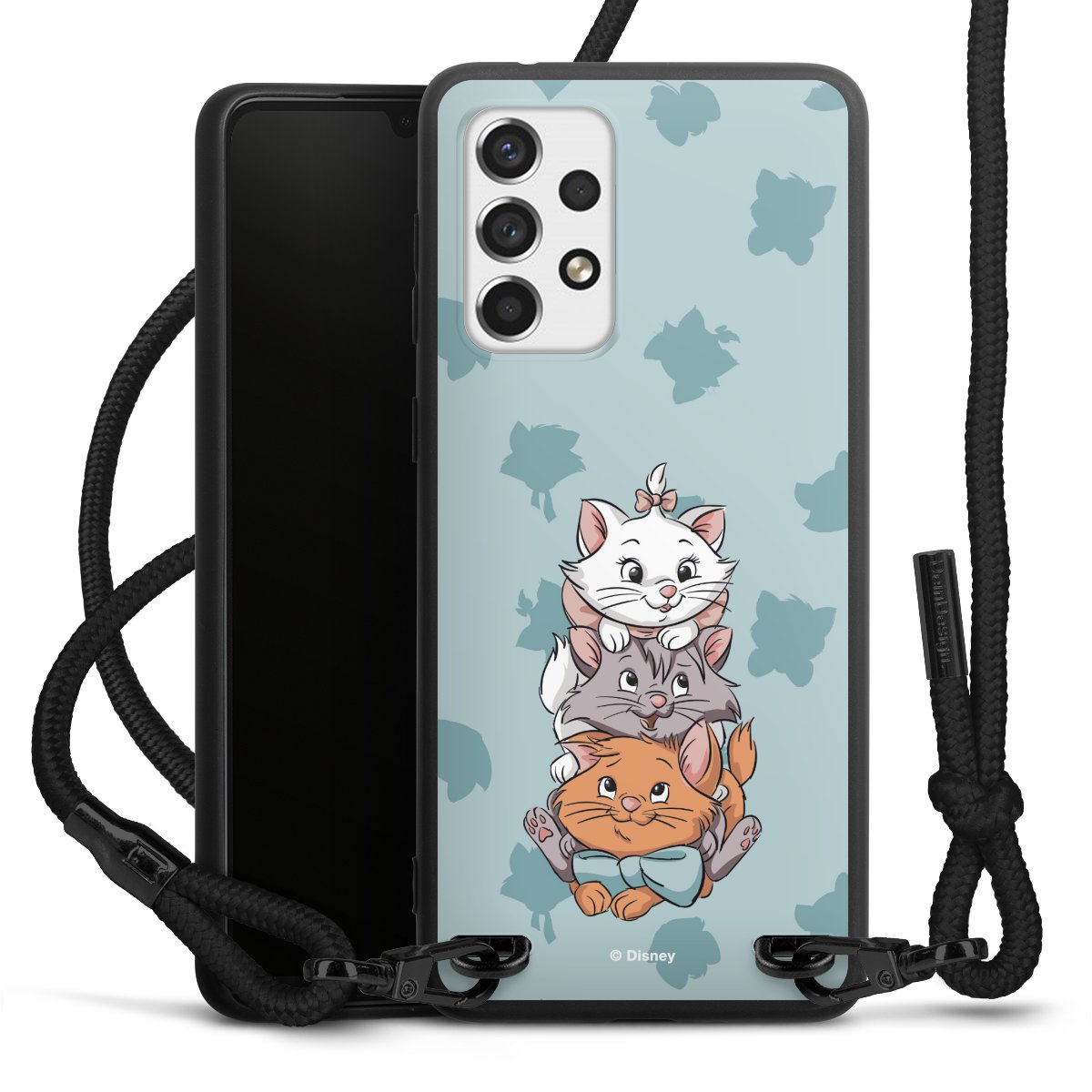 Die mattschwarze Silikonhülle besteht aus flexiblen TPU (thermoplastisches Polyurethan) und bietet robusten Schutz. Durch das langlebige, bruchsichere Material ist die Hülle biegsam und formbeständig zugleich. Die matte Oberfläche lässt Dein Design besser zur Geltung kommen und ist weniger anfällig für Fingerabdrücke und Schmutz. Das stylische Trend-Accessoire liegt griffig in der Hand und wird optimal von der Handykette aus Stoff (Polyester) ergänzt. Das geflochtene Stoffband ist ca. 1,70 Meter lang mit einem Durchmesser von ca. 0,5cm. Aufgrund der besonderen Knotentechnik ist das Band durch einfaches Ziehen in der Länge verstellbar. Als kleines i-Tüpfelchen haben wir das Band mit schicken Metall-Verschlüssen in Mattschwarz versehen.