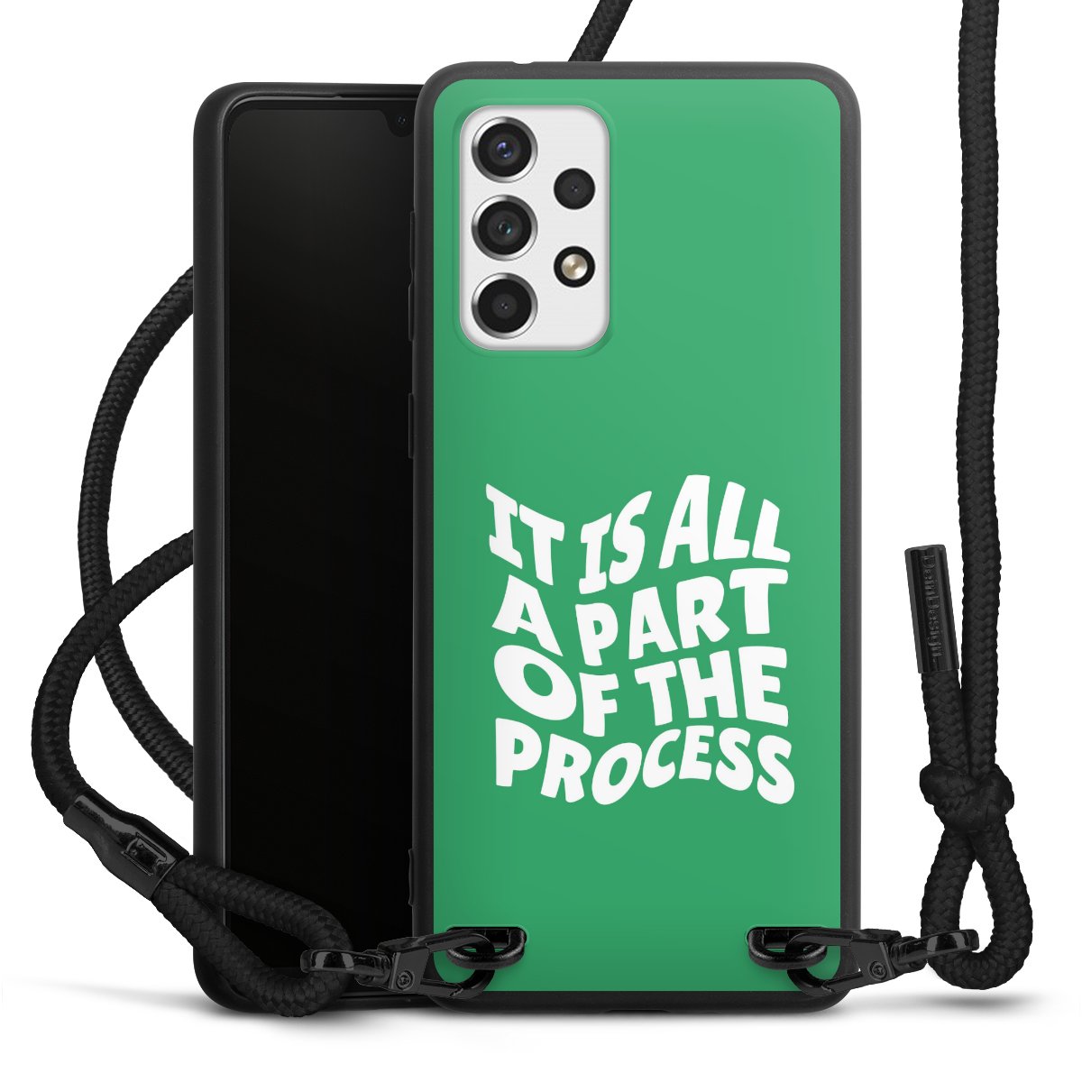 Die mattschwarze Silikonhülle besteht aus flexiblen TPU (thermoplastisches Polyurethan) und bietet robusten Schutz. Durch das langlebige, bruchsichere Material ist die Hülle biegsam und formbeständig zugleich. Die matte Oberfläche lässt Dein Design besser zur Geltung kommen und ist weniger anfällig für Fingerabdrücke und Schmutz. Das stylische Trend-Accessoire liegt griffig in der Hand und wird optimal von der Handykette aus Stoff (Polyester) ergänzt. Das geflochtene Stoffband ist ca. 1,70 Meter lang mit einem Durchmesser von ca. 0,5cm. Aufgrund der besonderen Knotentechnik ist das Band durch einfaches Ziehen in der Länge verstellbar. Als kleines i-Tüpfelchen haben wir das Band mit schicken Metall-Verschlüssen in Mattschwarz versehen.