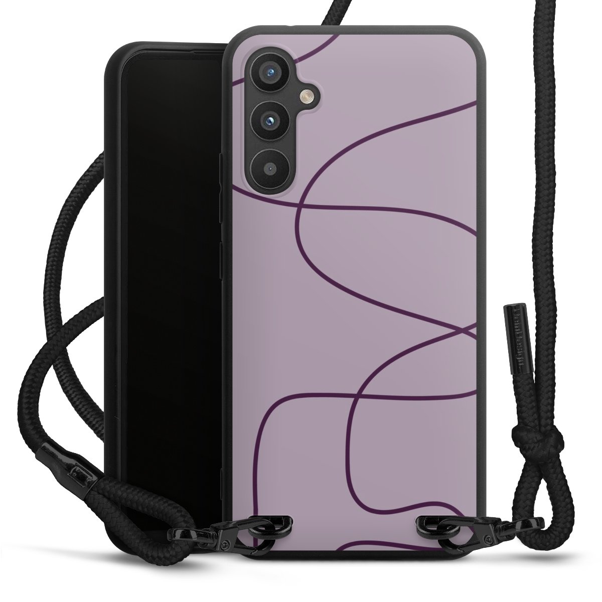 Pure Black: Handyhülle, Stoffband und Metalldetails in stylischem Mattschwarz.