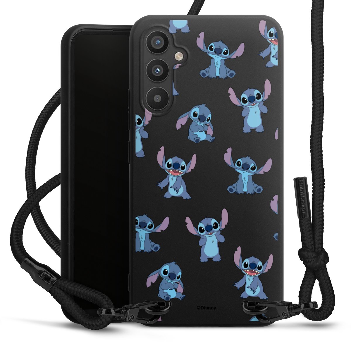 Pure Black: Handyhülle, Stoffband und Metalldetails in stylischem Mattschwarz.