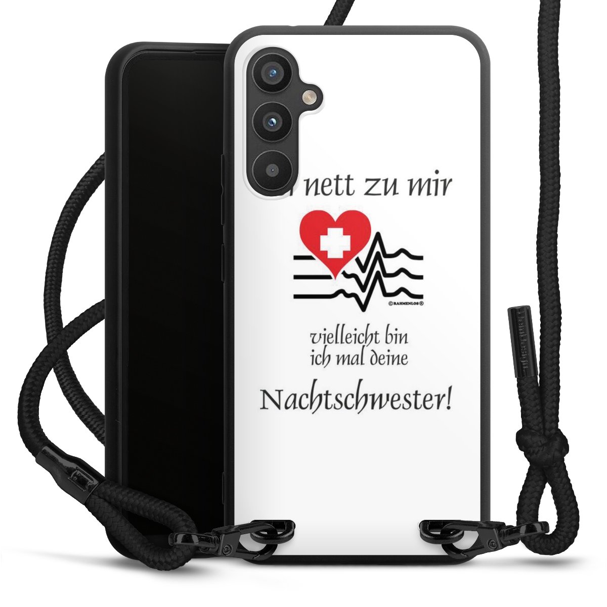 Die mattschwarze Silikonhülle besteht aus flexiblen TPU (thermoplastisches Polyurethan) und bietet robusten Schutz. Durch das langlebige, bruchsichere Material ist die Hülle biegsam und formbeständig zugleich. Die matte Oberfläche lässt Dein Design besser zur Geltung kommen und ist weniger anfällig für Fingerabdrücke und Schmutz. Das stylische Trend-Accessoire liegt griffig in der Hand und wird optimal von der Handykette aus Stoff (Polyester) ergänzt. Das geflochtene Stoffband ist ca. 1,70 Meter lang mit einem Durchmesser von ca. 0,5cm. Aufgrund der besonderen Knotentechnik ist das Band durch einfaches Ziehen in der Länge verstellbar. Als kleines i-Tüpfelchen haben wir das Band mit schicken Metall-Verschlüssen in Mattschwarz versehen.