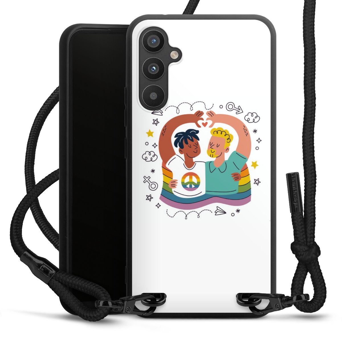 Bei dieser Handyhülle nutzen wir das solide Direktdruck-Verfahren, weshalb der Druckbereich ausschließlich die Rückseite umfasst und der Rand hingegen unbedruckt bleibt. Das Case zum Umhängen kann sowohl unbedruckt, als auch vollflächig oder partiell bedruckt bestellt werden. Wähle für Dein Design entweder eines unserer exklusiven Shop-Motive, oder werde kreativ und gestalte Dein Wunschdesign zum Beispiel mit Fotos und Overlays selbst. Designe Dir Dein persönliches Trend-Accessoire und setze ein individuelles Statement auf den Straßen.