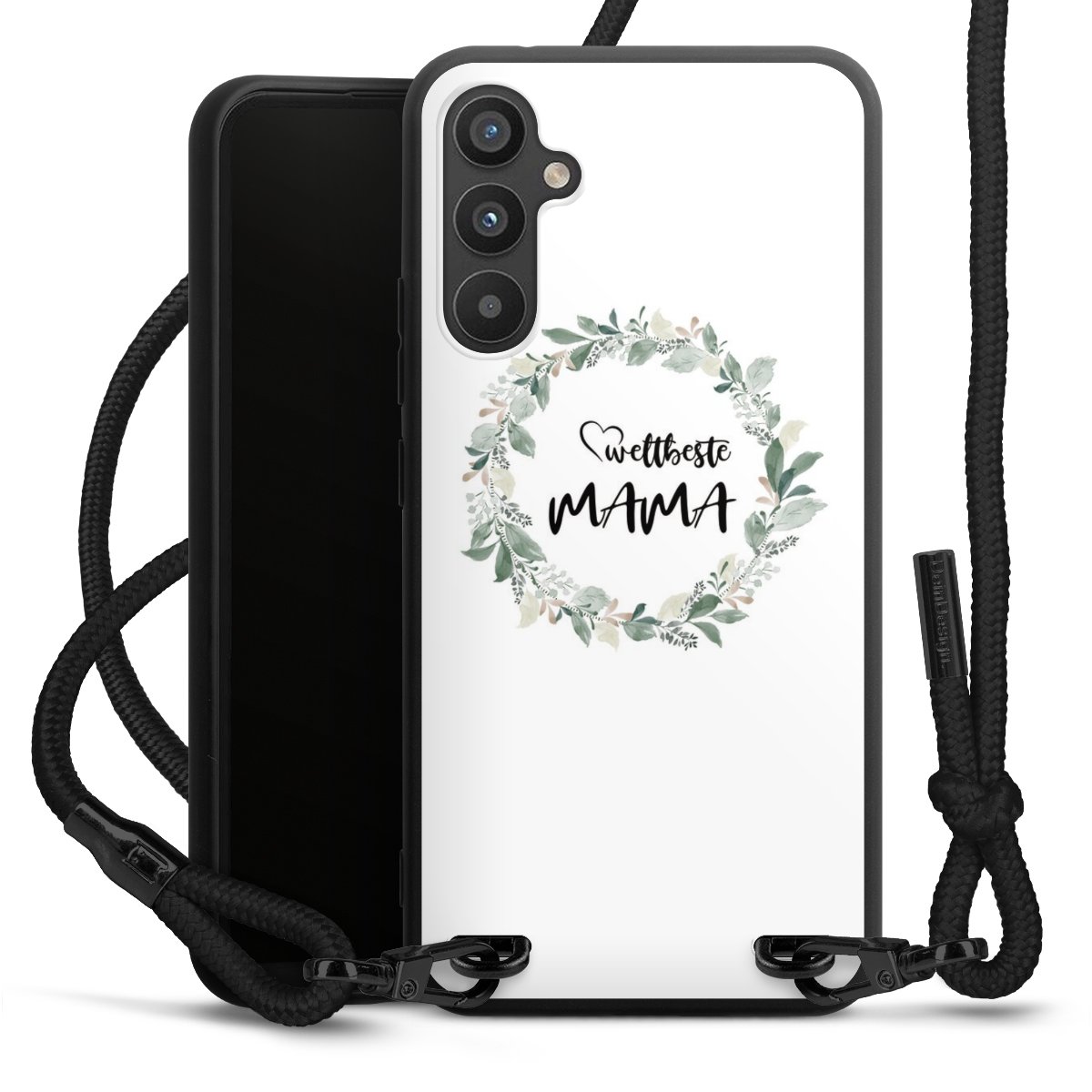 Die mattschwarze Silikonhülle besteht aus flexiblen TPU (thermoplastisches Polyurethan) und bietet robusten Schutz. Durch das langlebige, bruchsichere Material ist die Hülle biegsam und formbeständig zugleich. Die matte Oberfläche lässt Dein Design besser zur Geltung kommen und ist weniger anfällig für Fingerabdrücke und Schmutz. Das stylische Trend-Accessoire liegt griffig in der Hand und wird optimal von der Handykette aus Stoff (Polyester) ergänzt. Das geflochtene Stoffband ist ca. 1,70 Meter lang mit einem Durchmesser von ca. 0,5cm. Aufgrund der besonderen Knotentechnik ist das Band durch einfaches Ziehen in der Länge verstellbar. Als kleines i-Tüpfelchen haben wir das Band mit schicken Metall-Verschlüssen in Mattschwarz versehen.