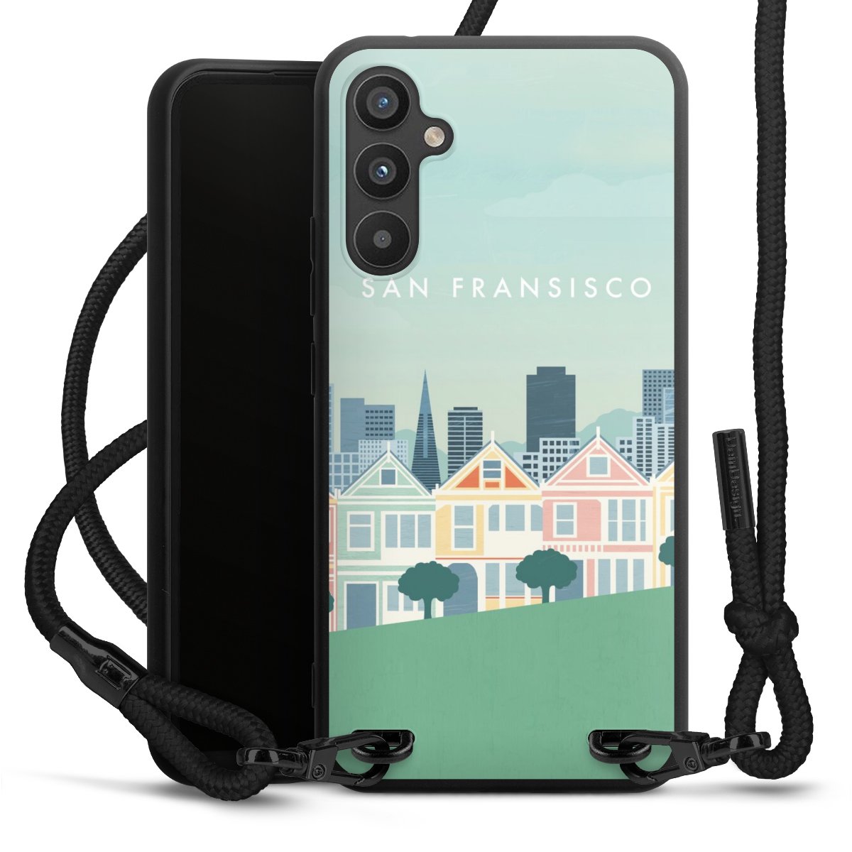 Bei dieser Handyhülle nutzen wir das solide Direktdruck-Verfahren, weshalb der Druckbereich ausschließlich die Rückseite umfasst und der Rand hingegen unbedruckt bleibt. Das Case zum Umhängen kann sowohl unbedruckt, als auch vollflächig oder partiell bedruckt bestellt werden. Wähle für Dein Design entweder eines unserer exklusiven Shop-Motive, oder werde kreativ und gestalte Dein Wunschdesign zum Beispiel mit Fotos und Overlays selbst. Designe Dir Dein persönliches Trend-Accessoire und setze ein individuelles Statement auf den Straßen.